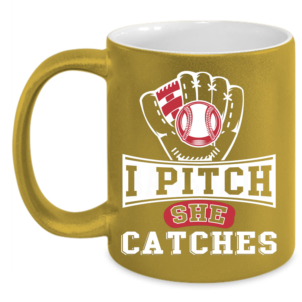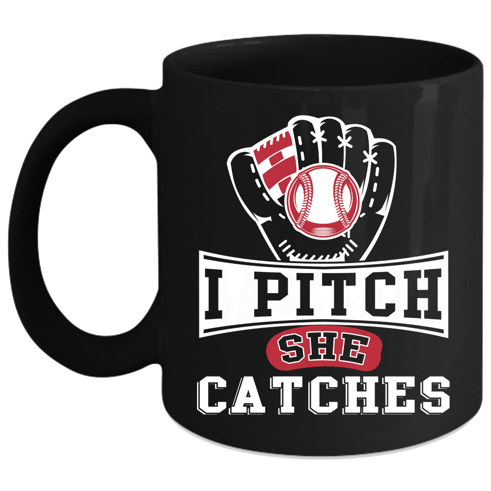 I Pitch She Catches Coffee Mug, Cool Softball Coffee Cup
