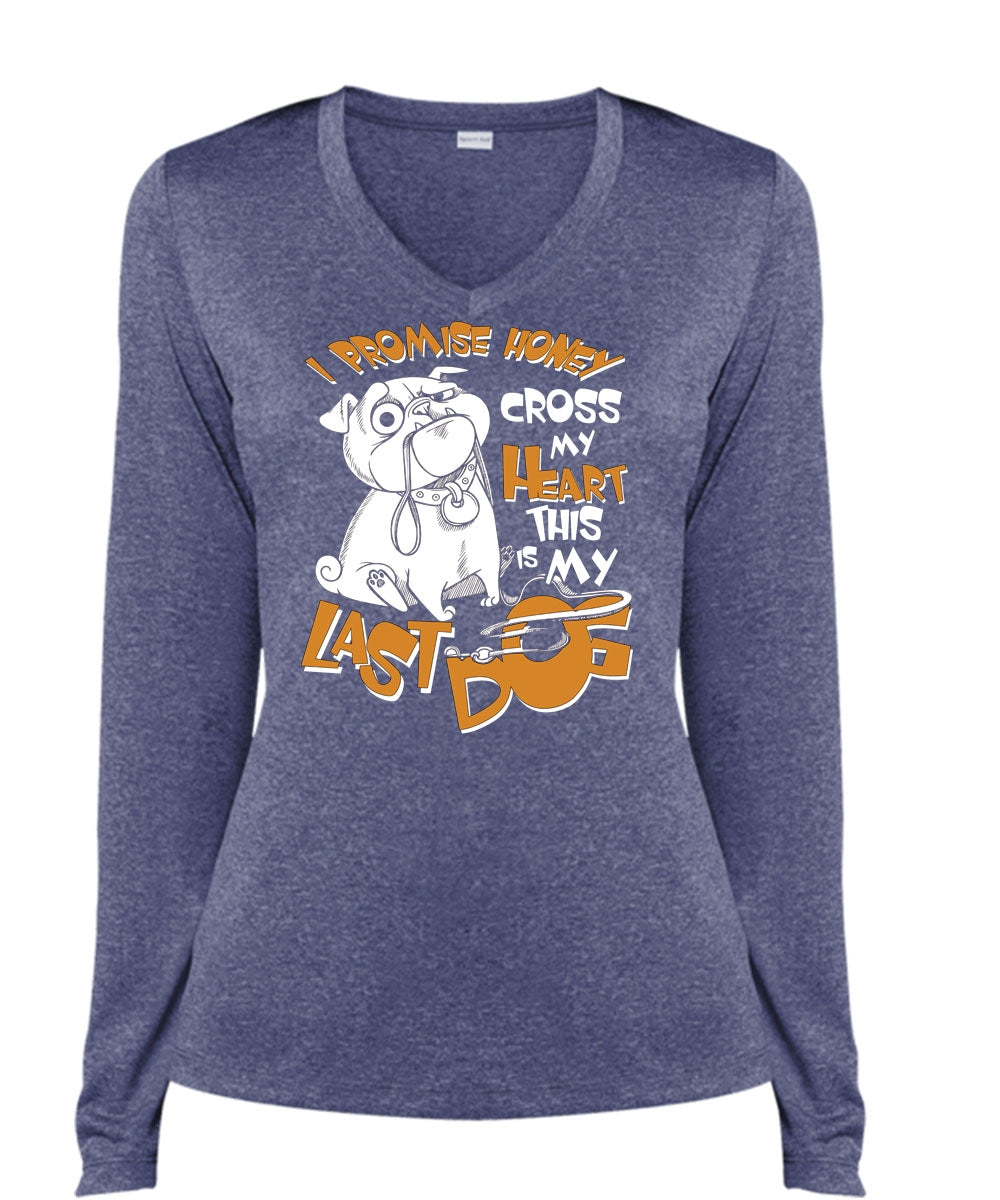 I Promise Honey Cross My Heart T Shirt, This Is My Last Dog T Shirt, Cool Shirt (Ladies LS Heather V-Neck)