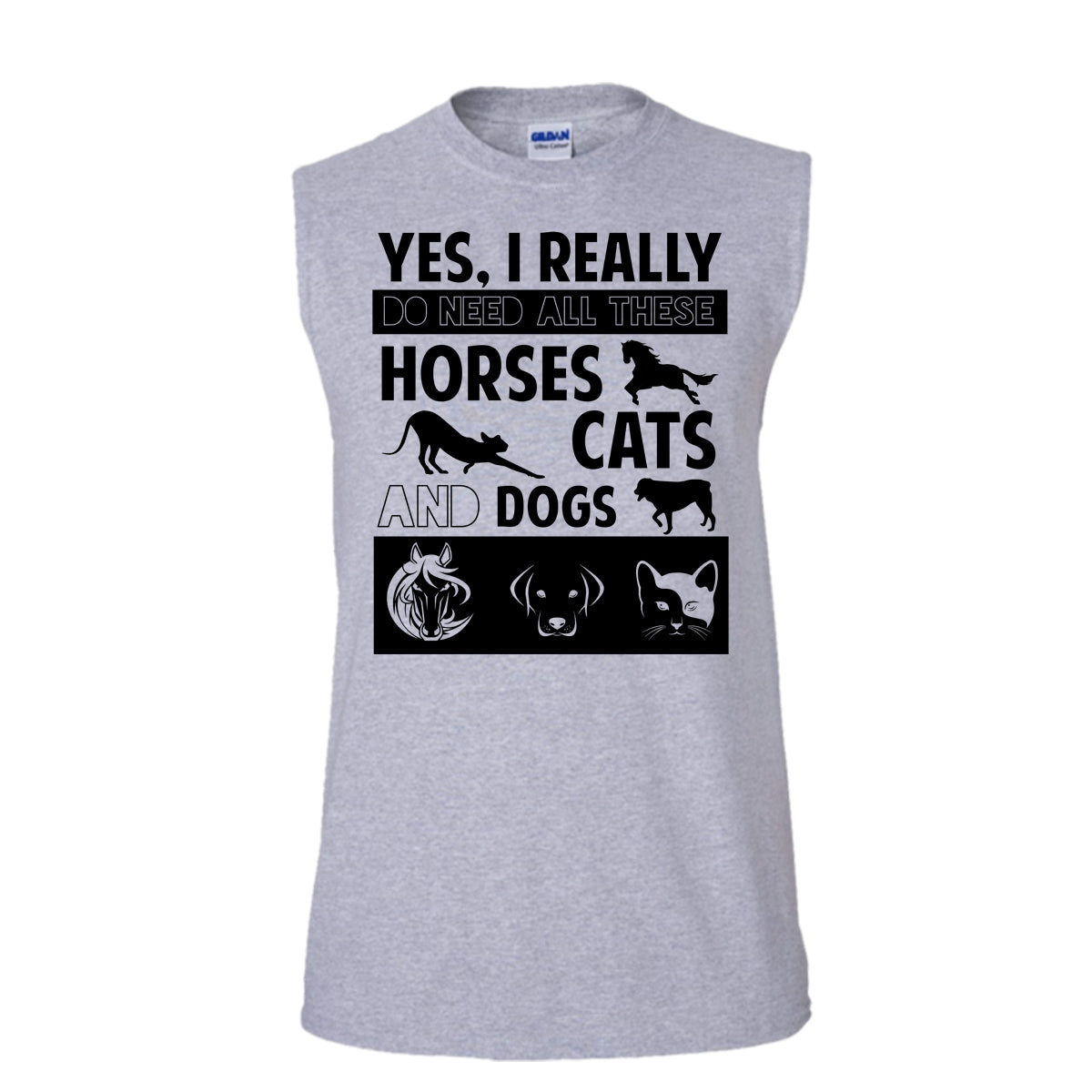 I Really Do Need All These Horse Shirt, Cats And Dogs Shirt (Men's Cotton Sleeveless)