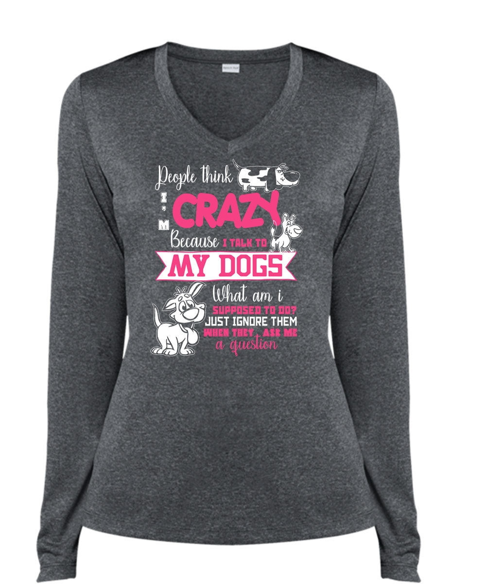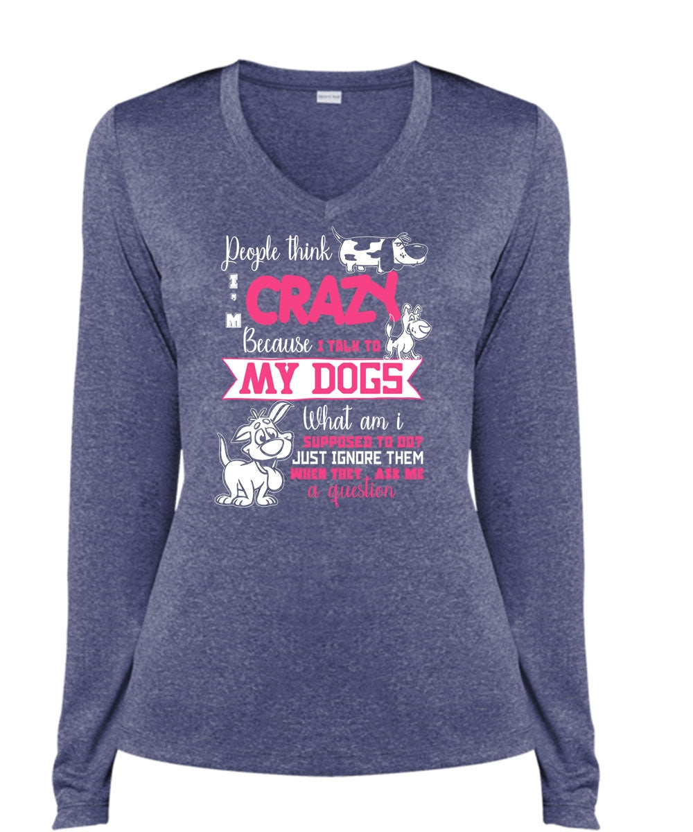 I Talk To My Dogs T Shirt, They Ask Me A Question T Shirt, Cool Shirt (Ladies LS Heather V-Neck)