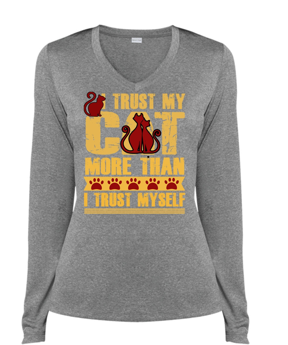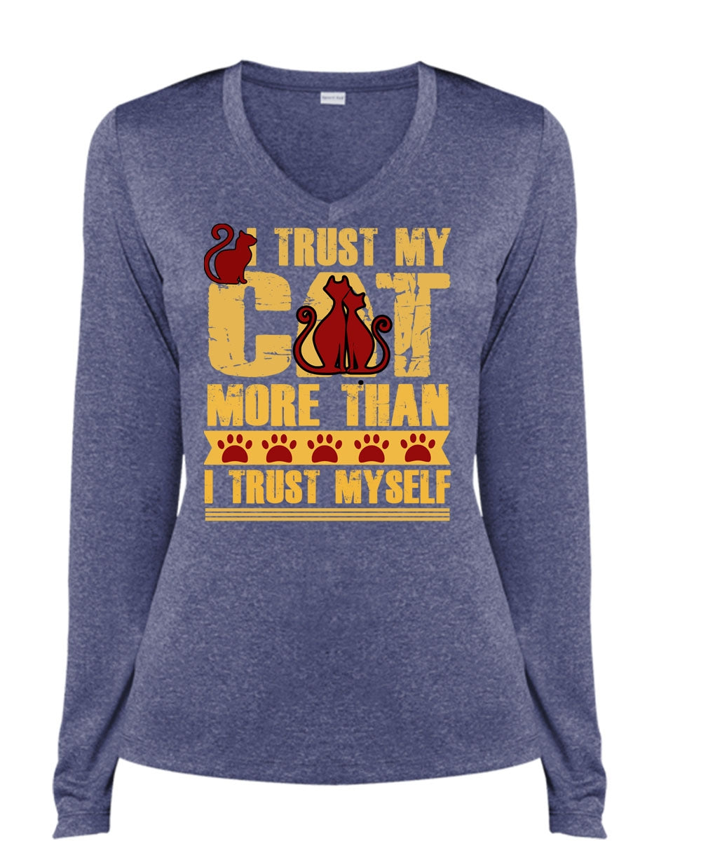 I Trust My Cat More T Shirt, I Trust Myself T Shirt, Cool Shirt (Ladies LS Heather V-Neck)