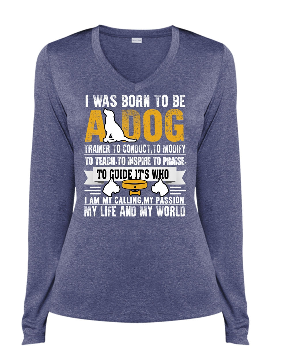 I Was Born To Be A Dog T Shirt, My Life And My World T Shirt, Cool Shirt (Ladies LS Heather V-Neck)