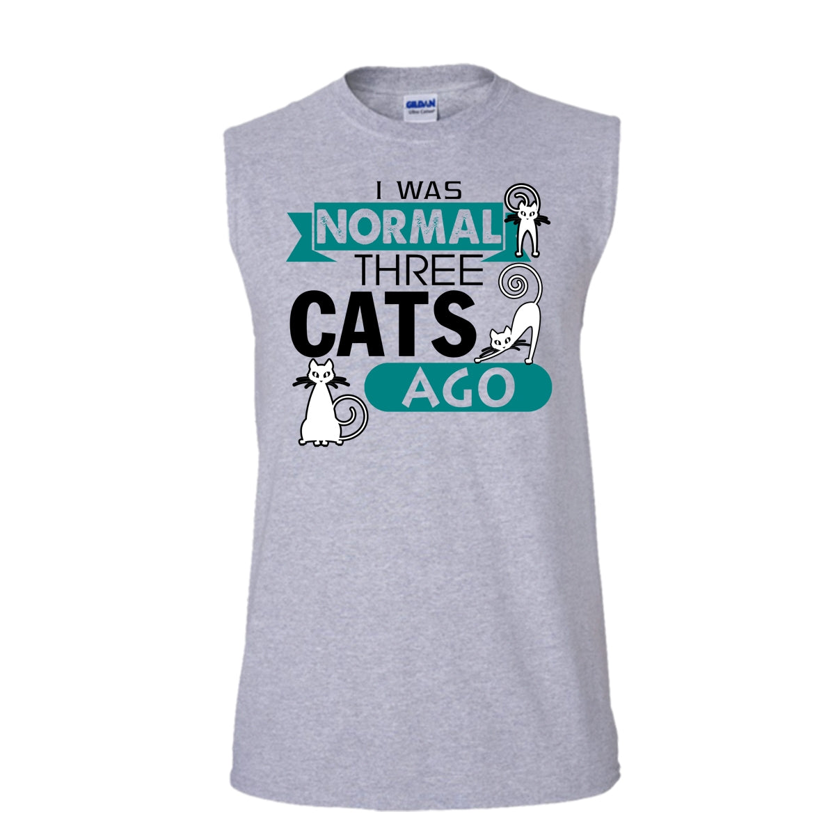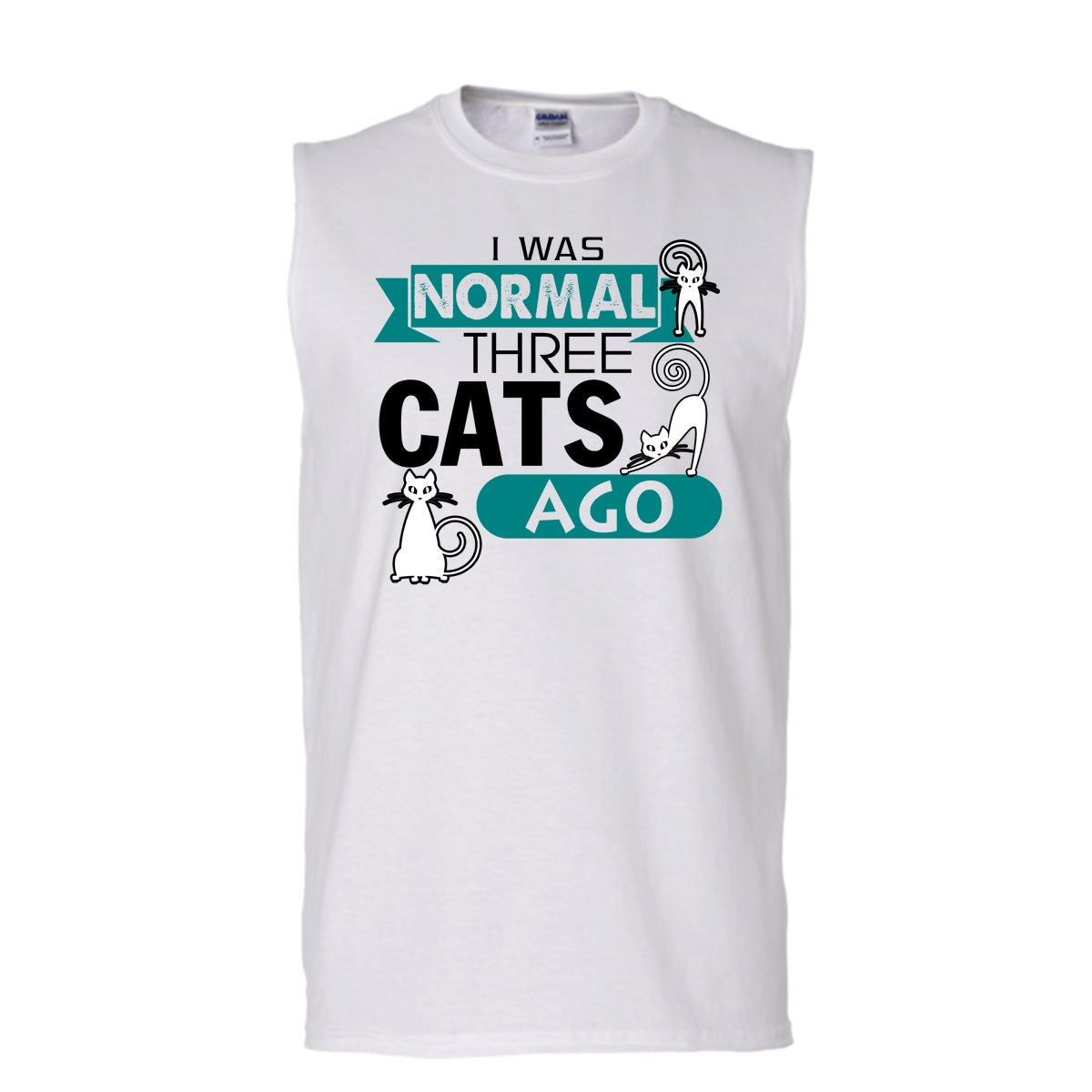 I Was Normal Three Cats Ago Shirt, Funny Cat Shirt (Men's Cotton Sleeveless)