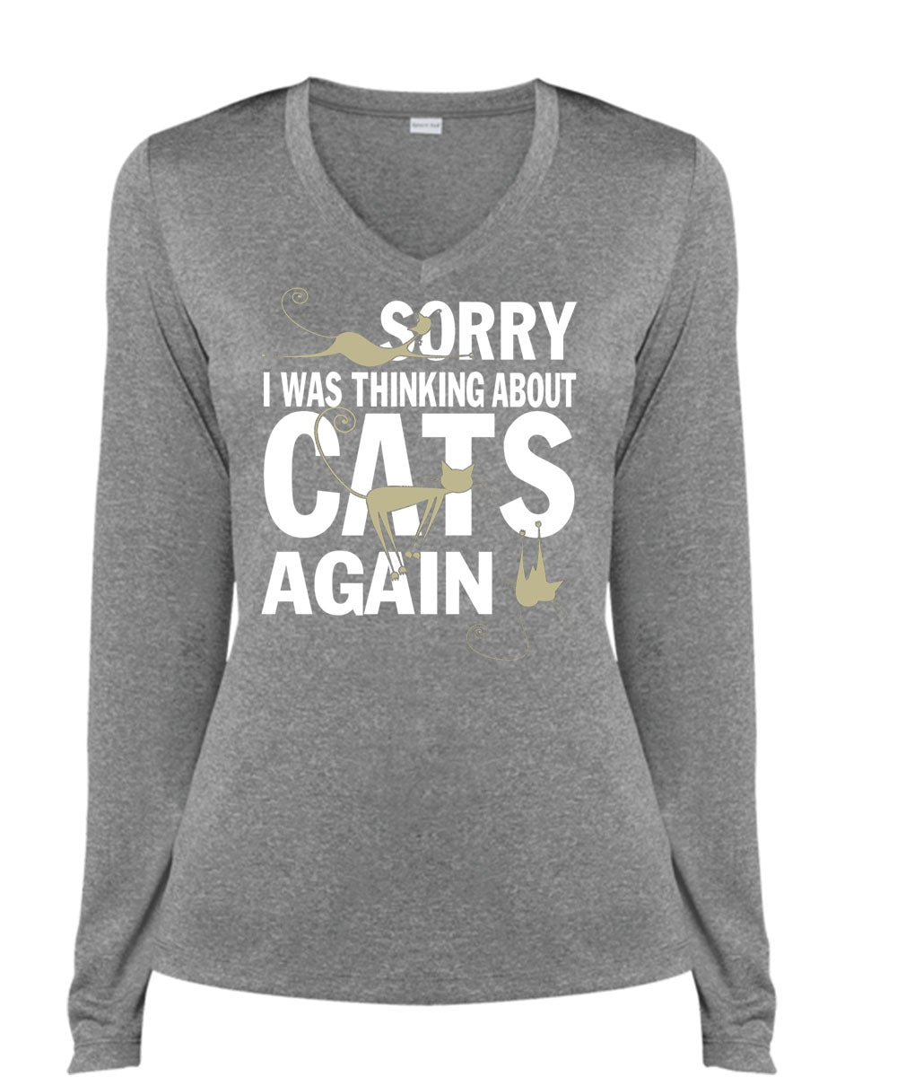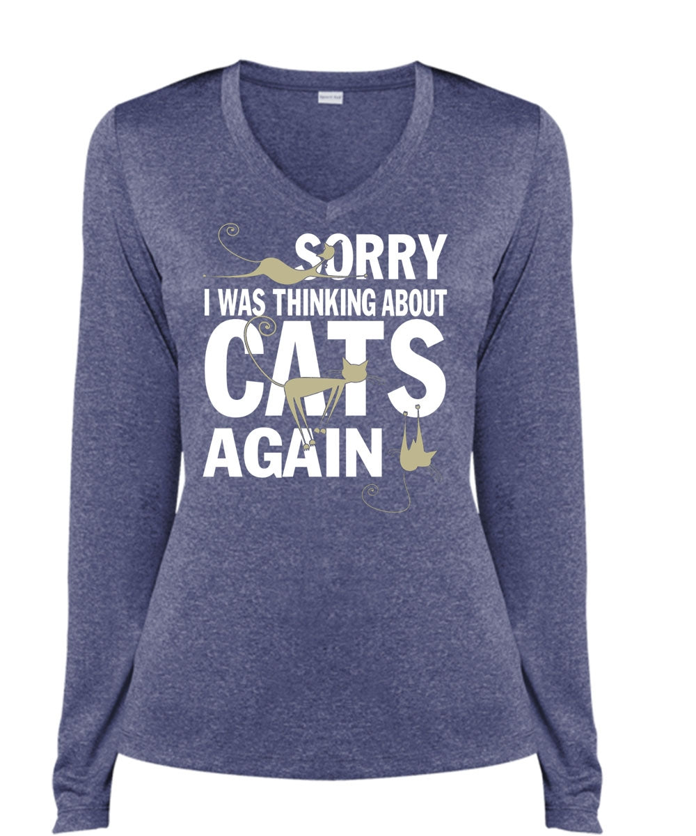 I Was Thinking About Cats Again T Shirt, My Favorite T Shirt, Cool Shirt (Ladies LS Heather V-Neck)