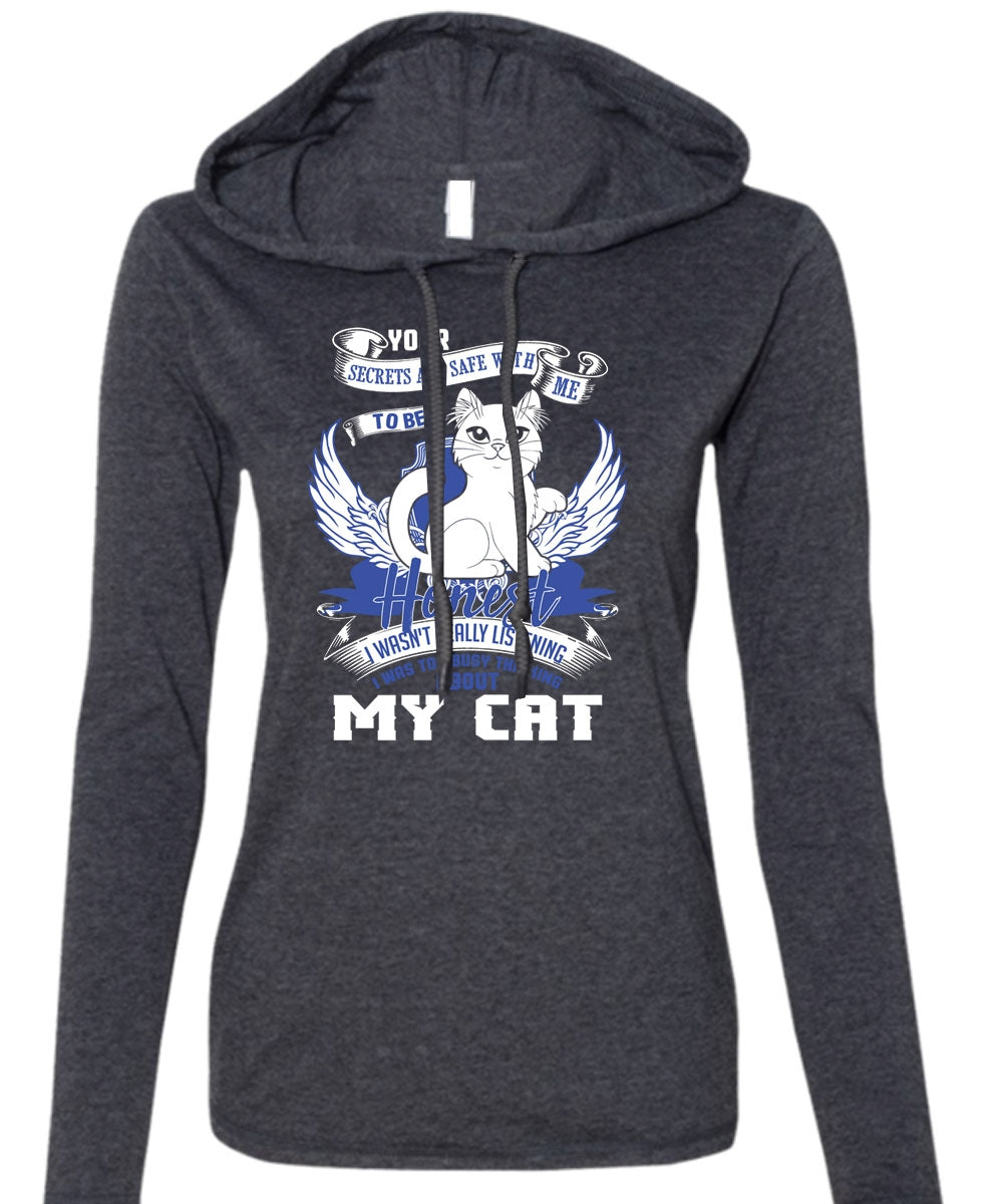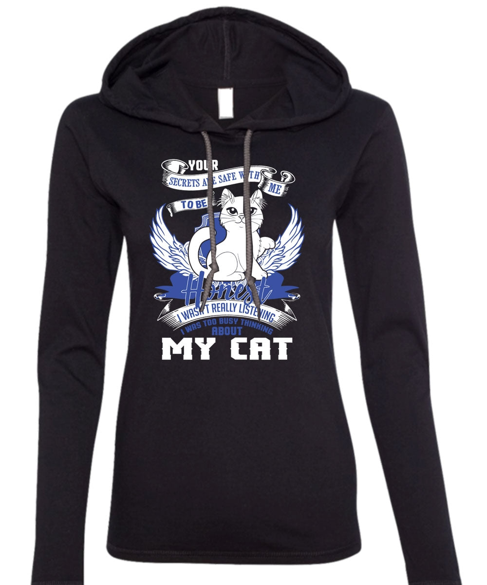 I Was Too Busy Thinking About My Cat T Shirt, My Favorite T Shirt (Anvil Ladies Ringspun Hooded)