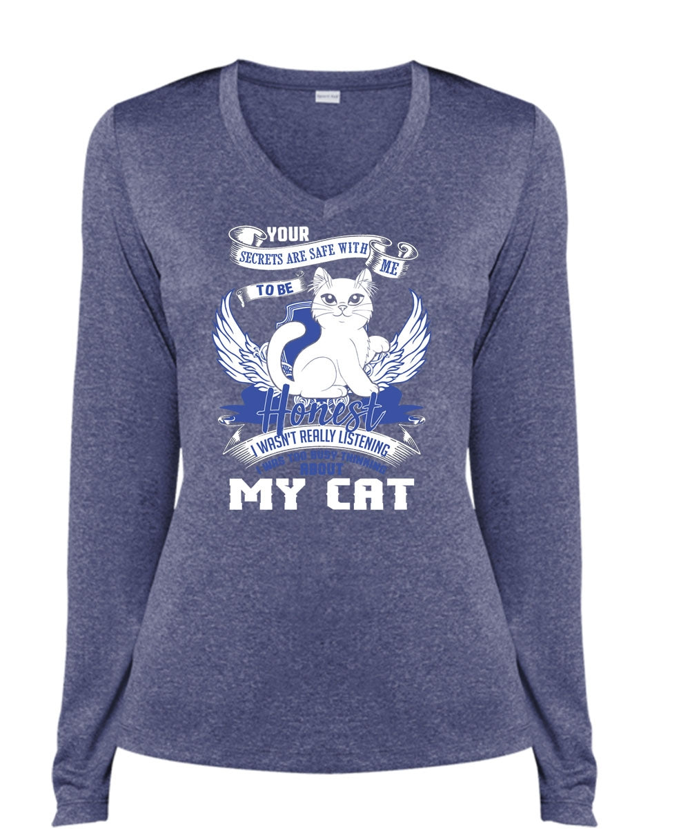 I Was Too Busy Thinking About My Cat T Shirt, My Favorite T Shirt, Cool Shirt (Ladies LS Heather V-Neck)