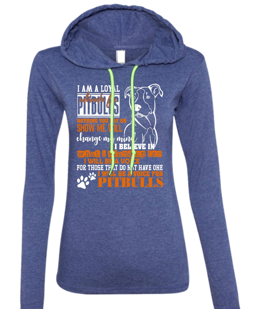 I Will Be A Voice For Pit Bulls T Shirt, Loyal Advocate For Pit Bulls T Shirt (Anvil Ladies Ringspun Hooded)