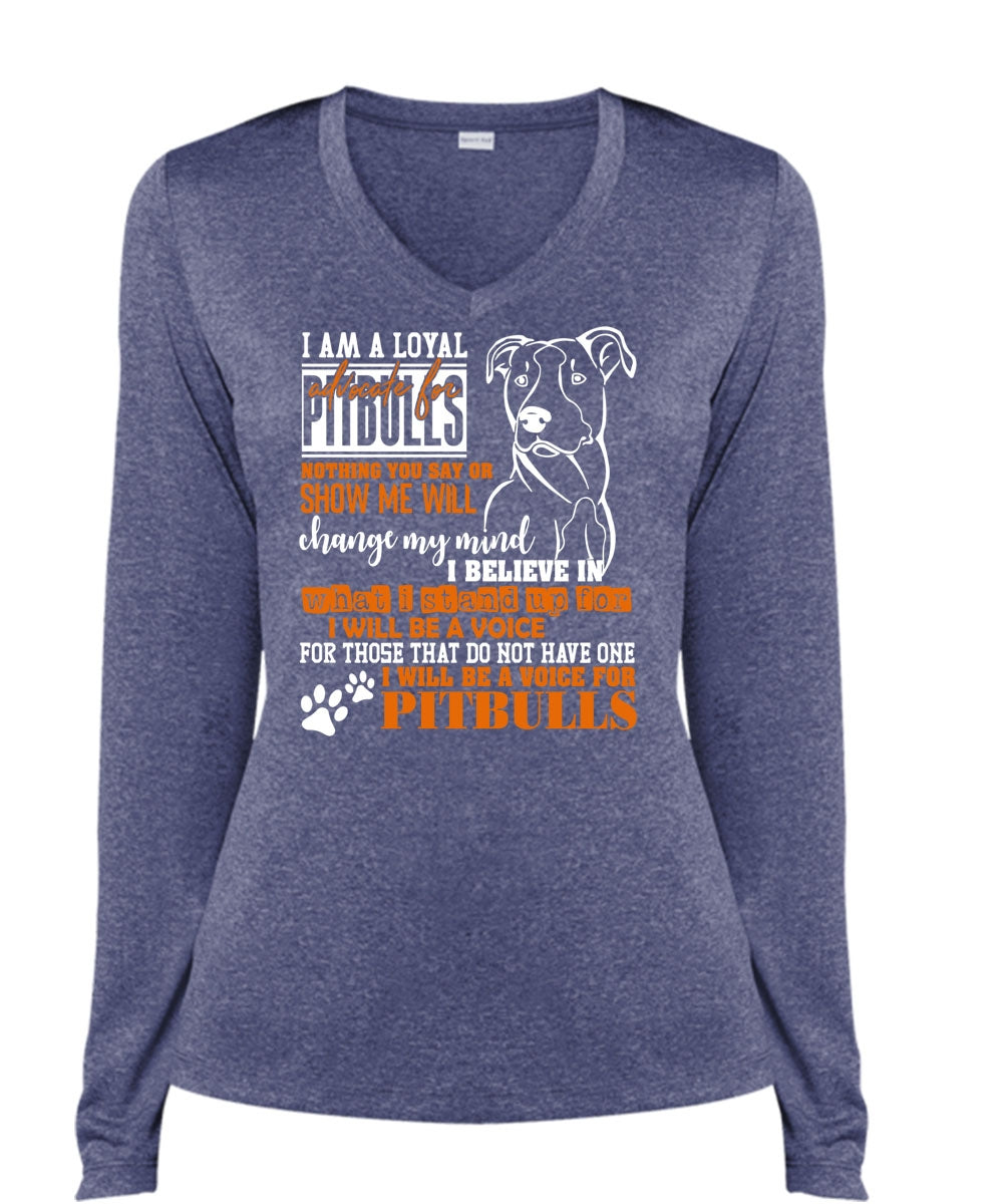 I Will Be A Voice For Pit Bulls T Shirt, Loyal Advocate For Pit Bulls T Shirt, Cool Shirt (Ladies LS Heather V-Neck)