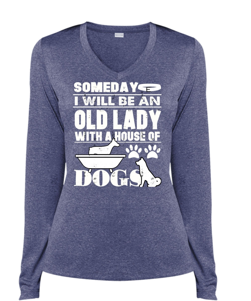 I Will Be An Old Lady T Shirt, House Of Dogs T Shirt, Cool Shirt (Ladies LS Heather V-Neck)