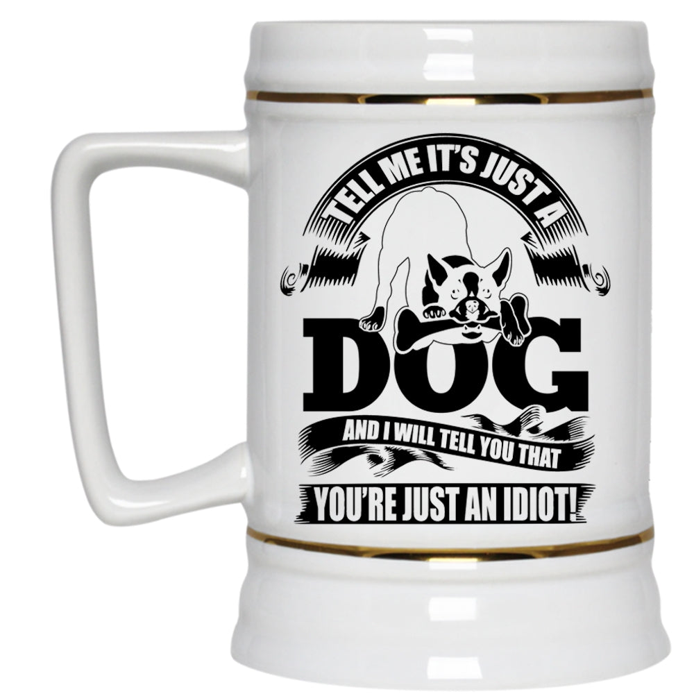 I Will Tell You That You're Just An Idiot Beer Stein 22oz, Tell Me It's Just A Dog Beer Mug