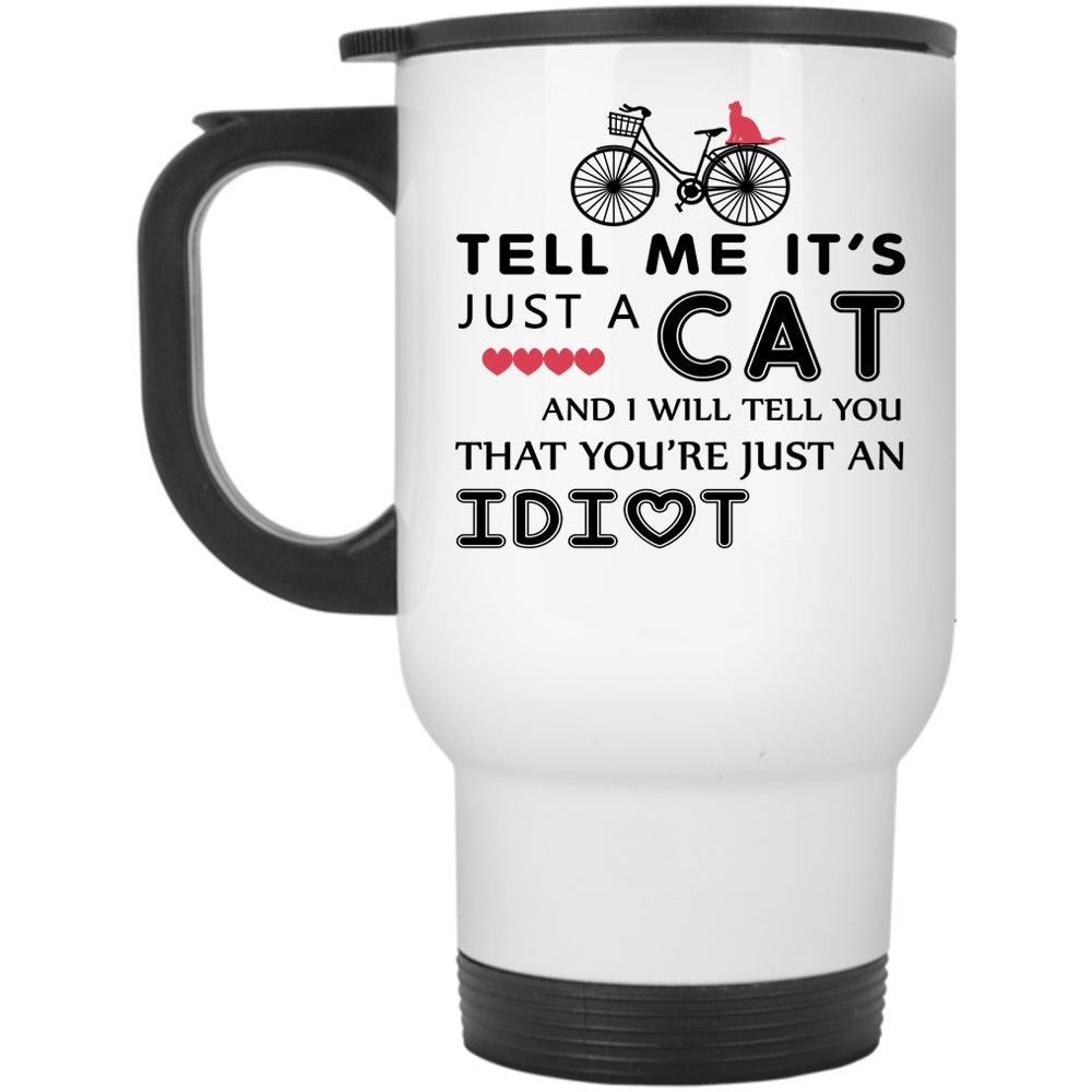 I Will Tell You That You're Just An Idiot Travel Mug, Tell Me It's Just A Cat Mug