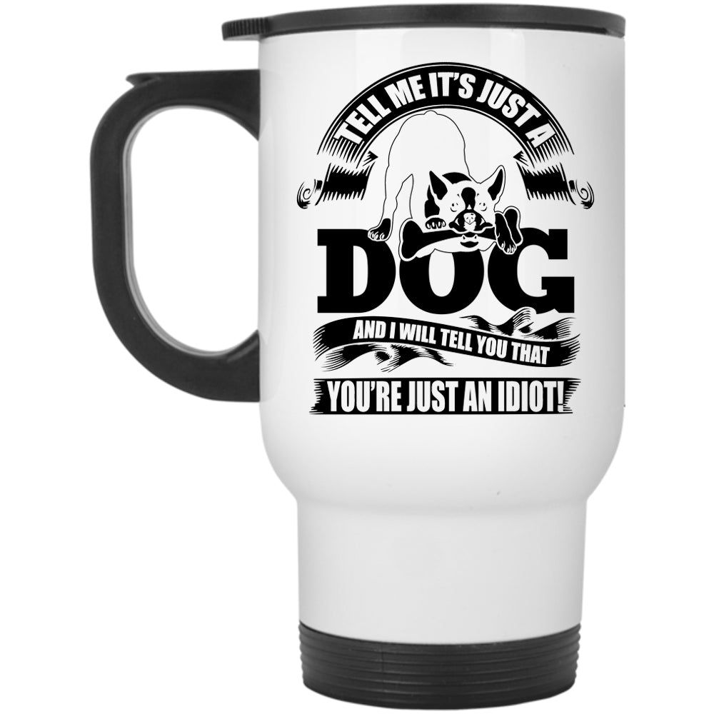 I Will Tell You That You're Just An Idiot Travel Mug, Tell Me It's Just A Dog Mug