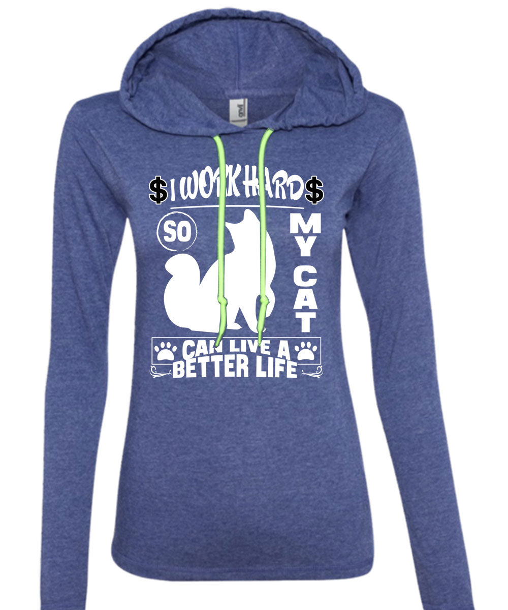 I Work Hard So My Cat Can Live A Better Life T Shirt, Being A Worker T Shirt (Anvil Ladies Ringspun Hooded)