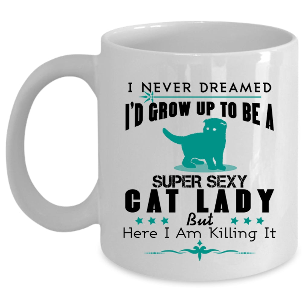 I'd Grow Up To Be A Cat Lady Cup, I Love Cats Mug (Coffee Mug - White)