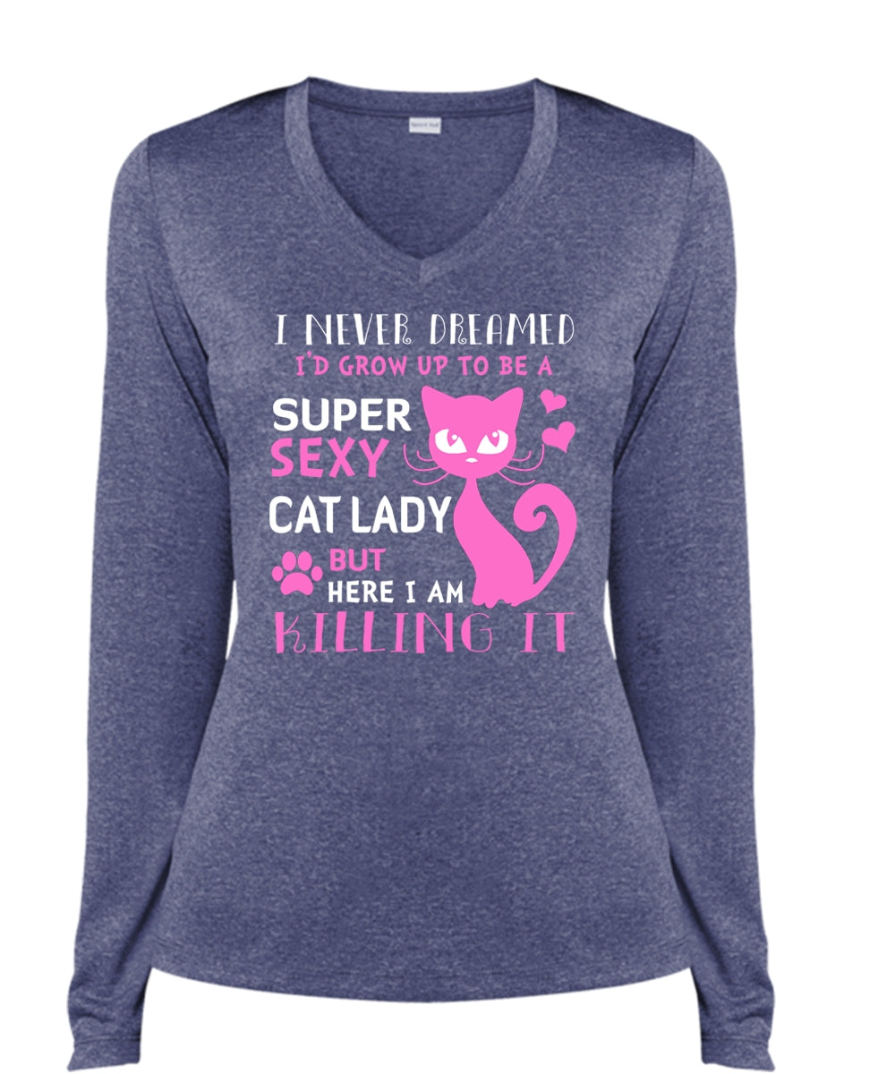I'd Grow Up To Be A Cat Lady T Shirt, Pets T Shirt, I Never Dreamed T Shirt (Ladies LS Heather V-Neck)