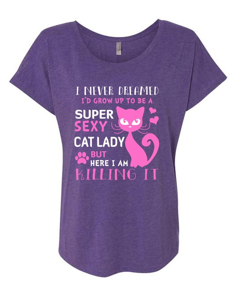 I'd Grow Up To Be A Cat Lady T Shirt, Pets T Shirt, I Never Dreamed T Shirt (Ladies' Triblend Dolman Sleeve)