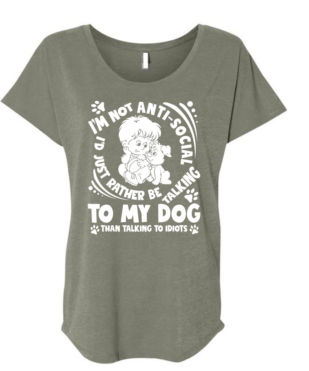 I'd Just Rather Be Talking To My Dog T Shirt, Talking To Idiots T Shirt, Cool Shirt (Ladies' Triblend Dolman Sleeve)