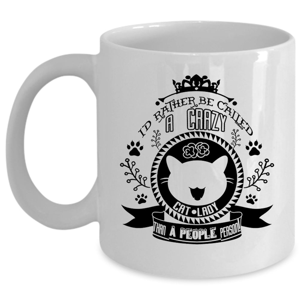 I'd Rather Be Called A Crazy Cat Lady Mug, Lovely Cats Cup (Coffee Mug - White)