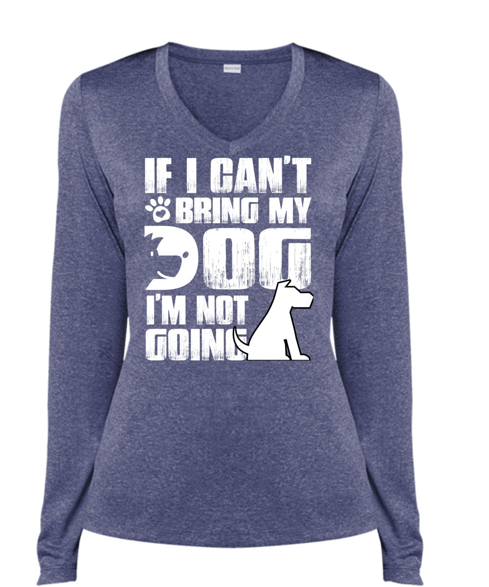 If I Can't Bring My Dog T Shirt, I'm Not Going T Shirt, Cool Shirt (Ladies LS Heather V-Neck)