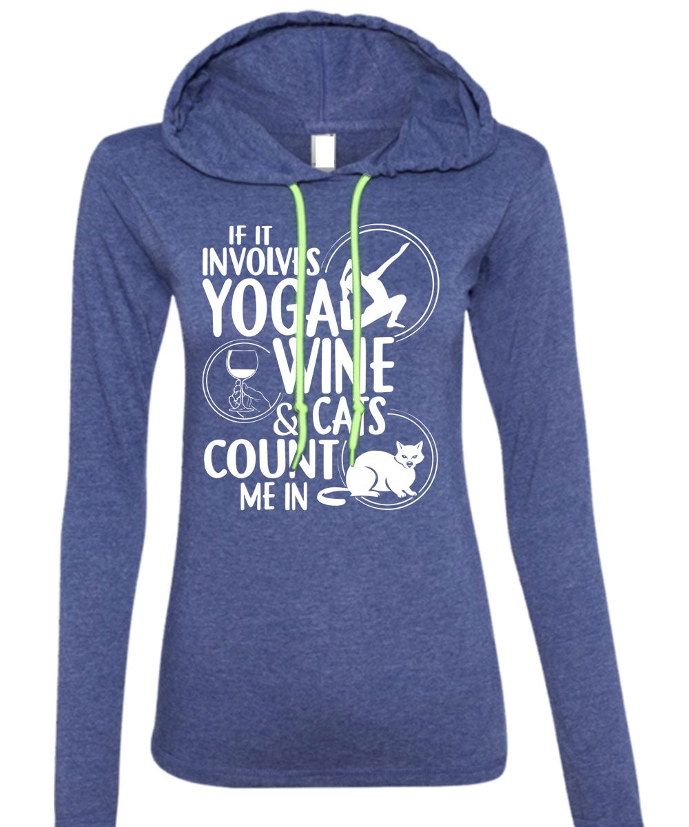 If It Involves Yoga Wine T Shirt, Cats Count Me In T Shirt (Anvil Ladies Ringspun Hooded)