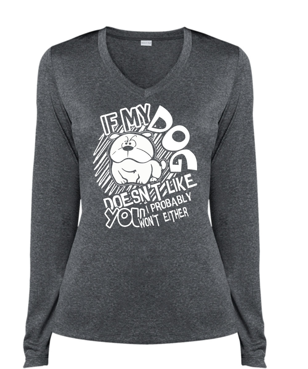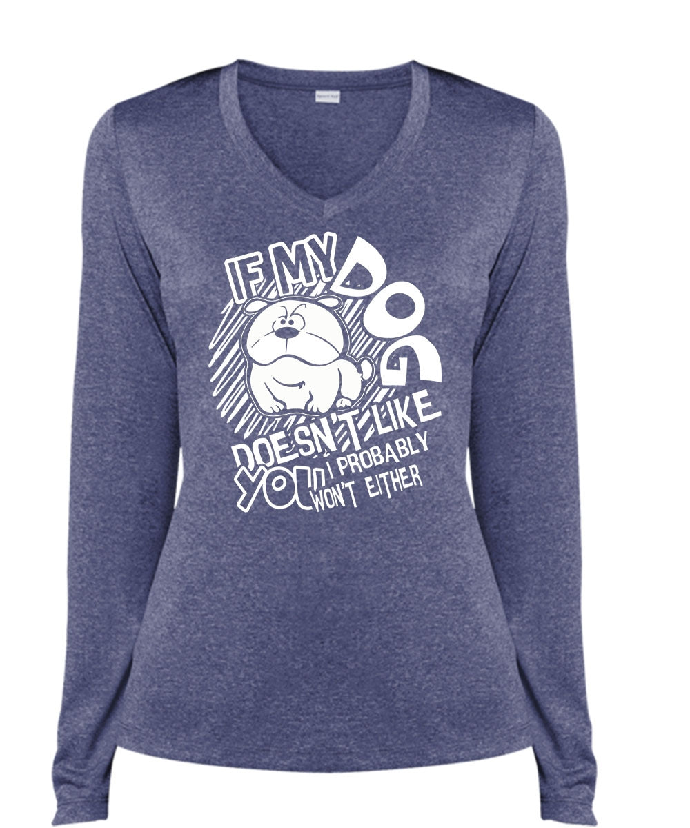 If My Dog Doesn't Like T Shirt, My Favorite T Shirt, Cool Shirt (Ladies LS Heather V-Neck)