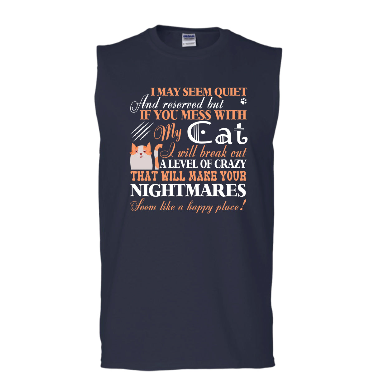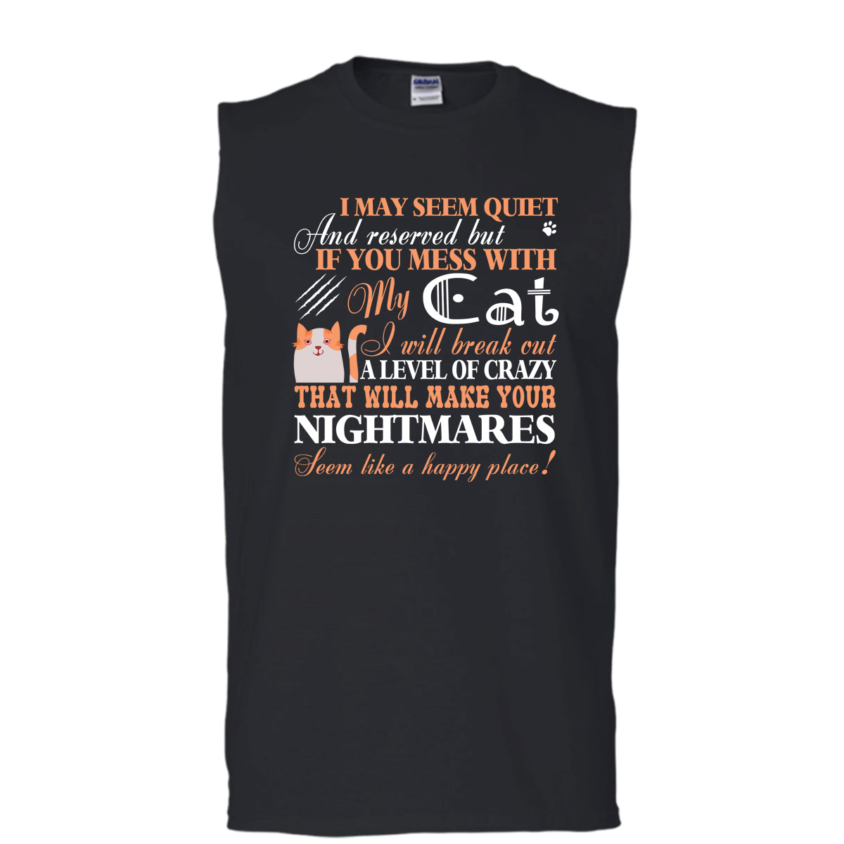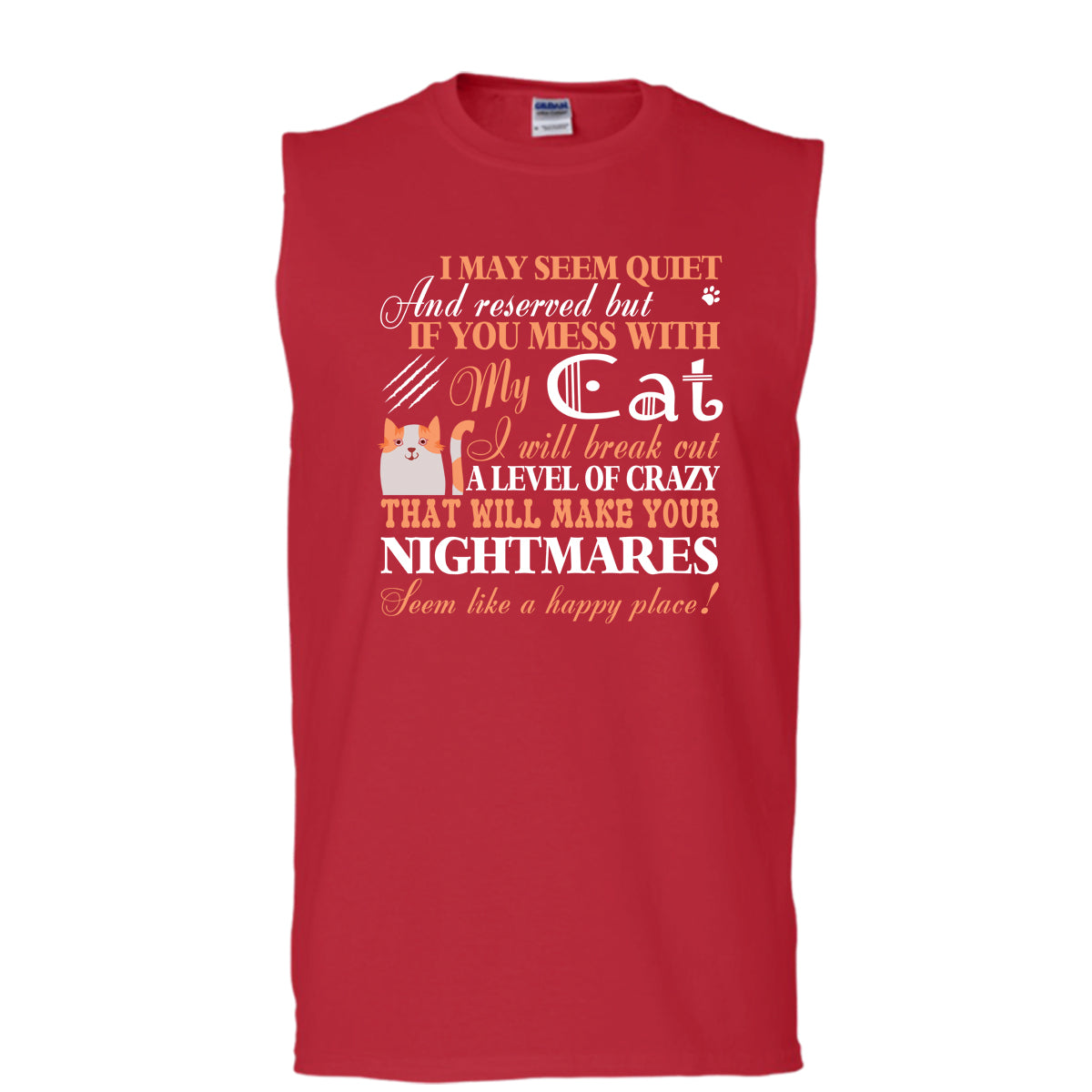 If You Mess With My Cat T Shirt, Will Make Your Nightmares T Shirt, Cool T Shirt (Men's Cotton Sleeveless)