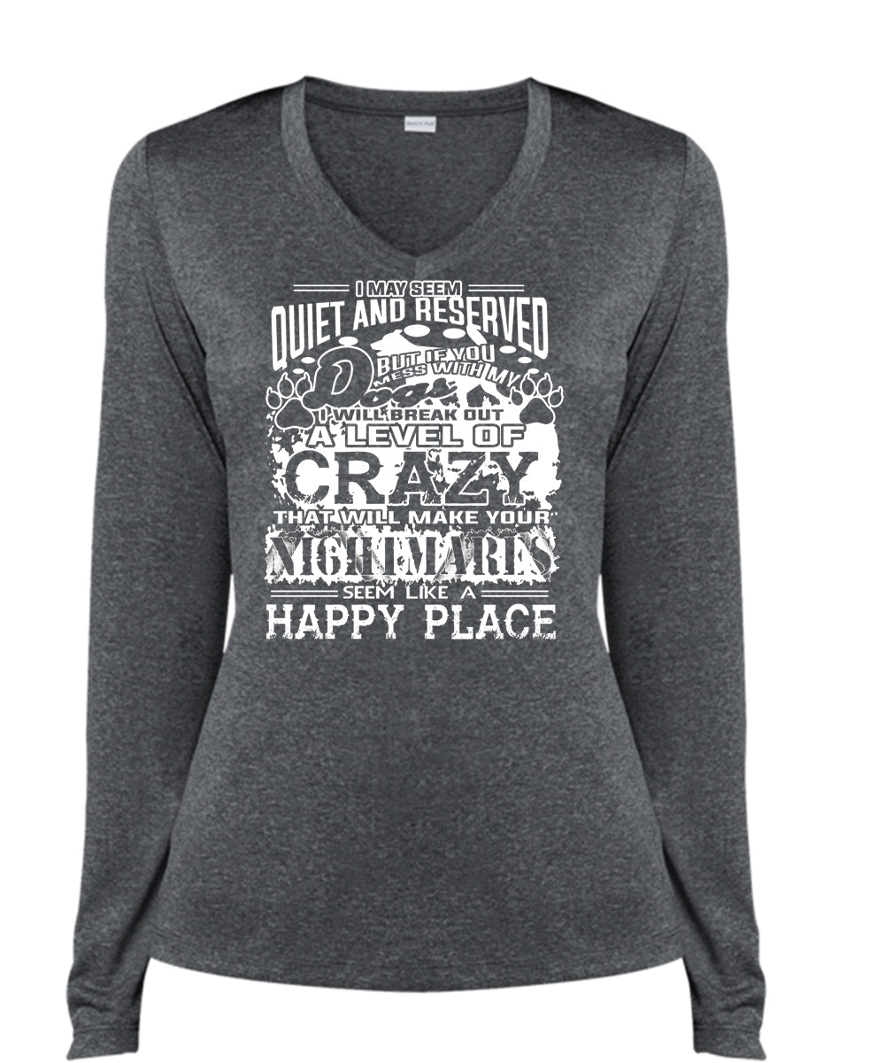 If You Mess With My Dog I Will Break Out A Level Of Crazy T Shirt, Pets T Shirt (Ladies LS Heather V-Neck)