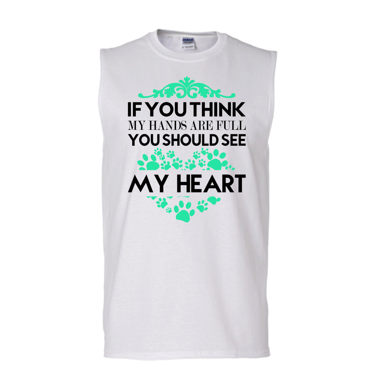 If You Se My Hands Are Full T Shirt, I Love Dog T Shirt, Awesome t-shirts (Men's Cotton Sleeveless)