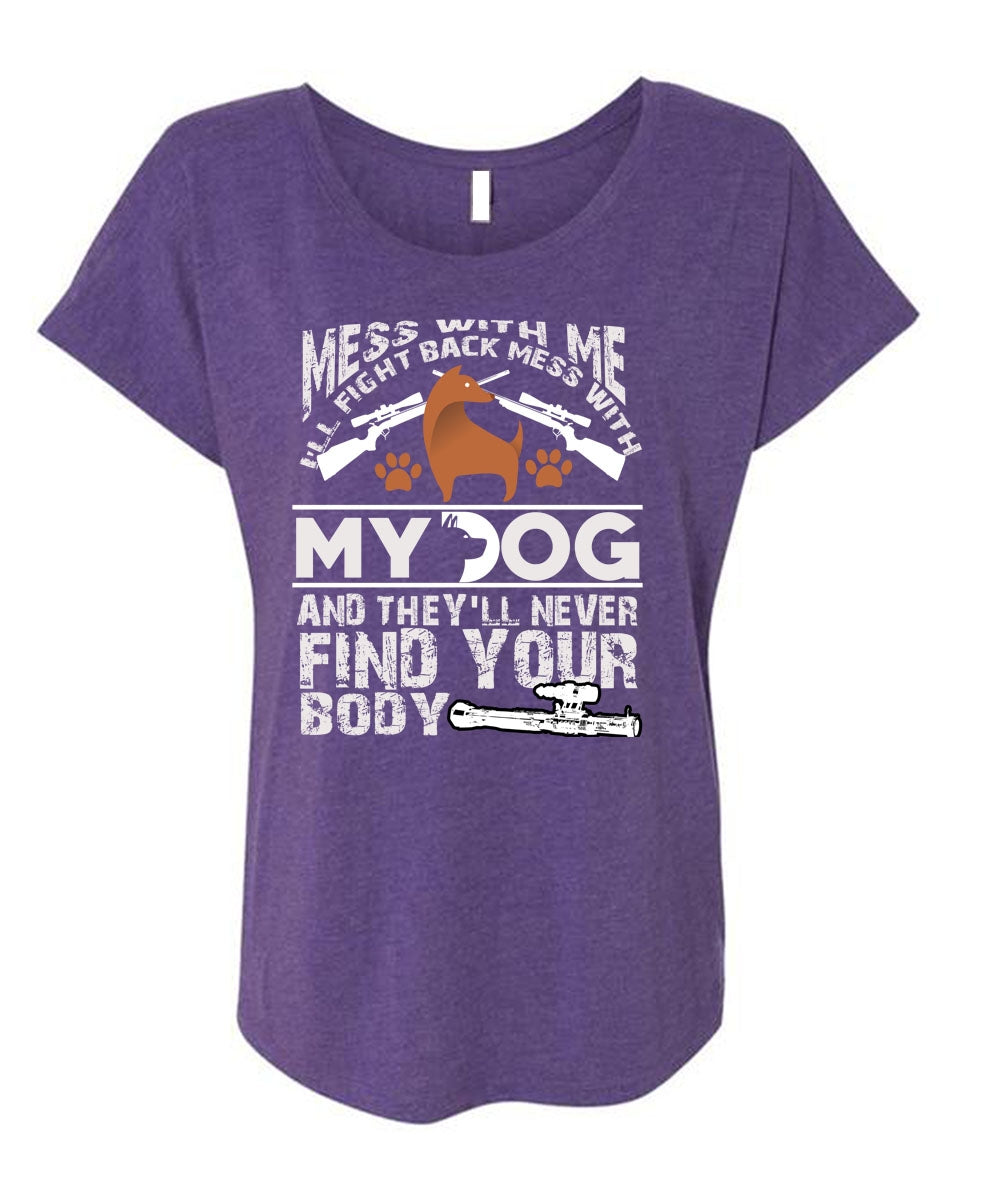 I'll Fight Back Mess With My Dog T Shirt, They'll Never Find Your Body T Shirt, Cool Shirt (Ladies' Triblend Dolman Sleeve)