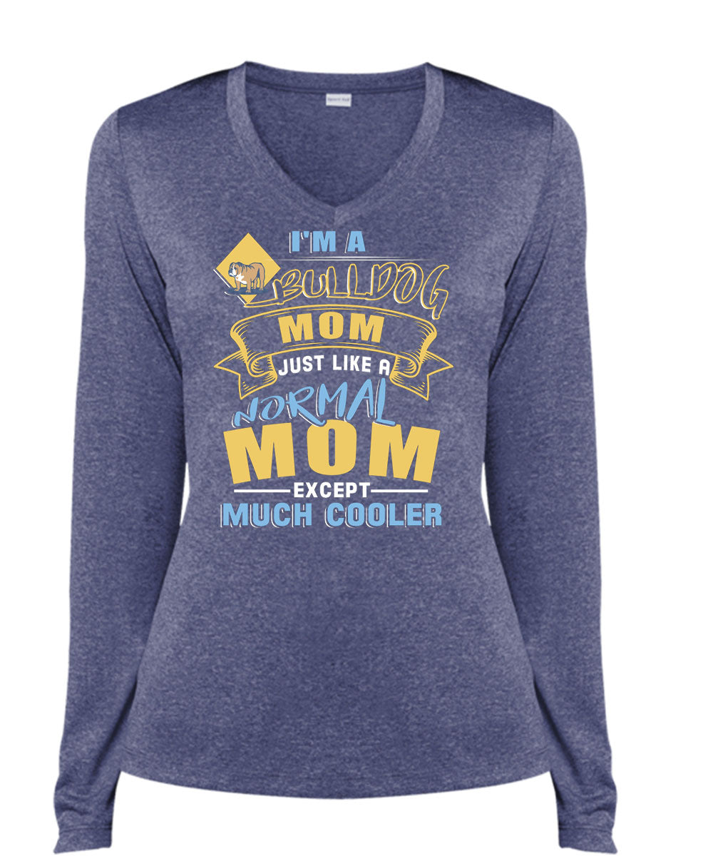 I'm A Bulldog Mom Just Like A Normal Mom Except Much Cooler T Shirt, Being A Mother T Shirt, Cool Shirt (Ladies LS Heather V-Neck)