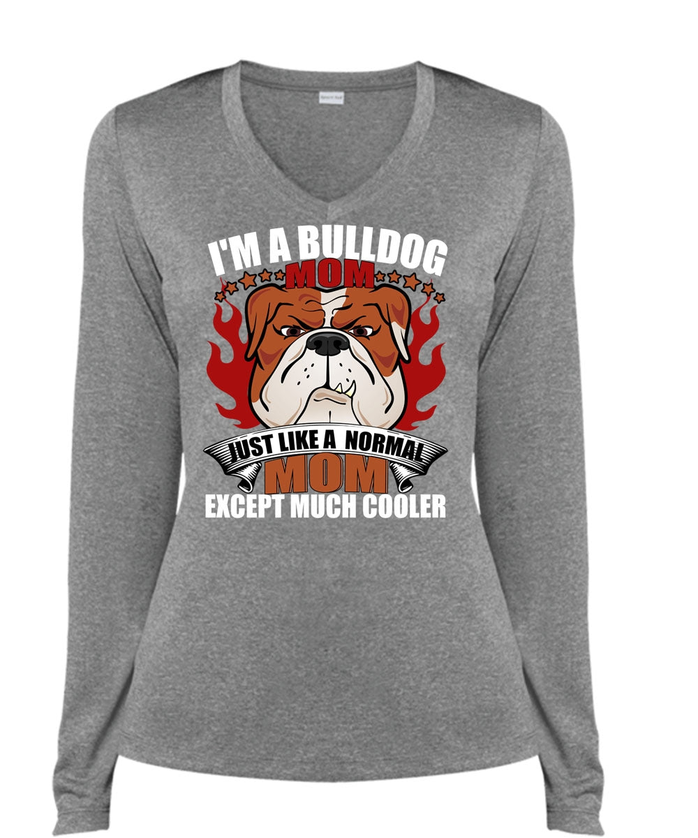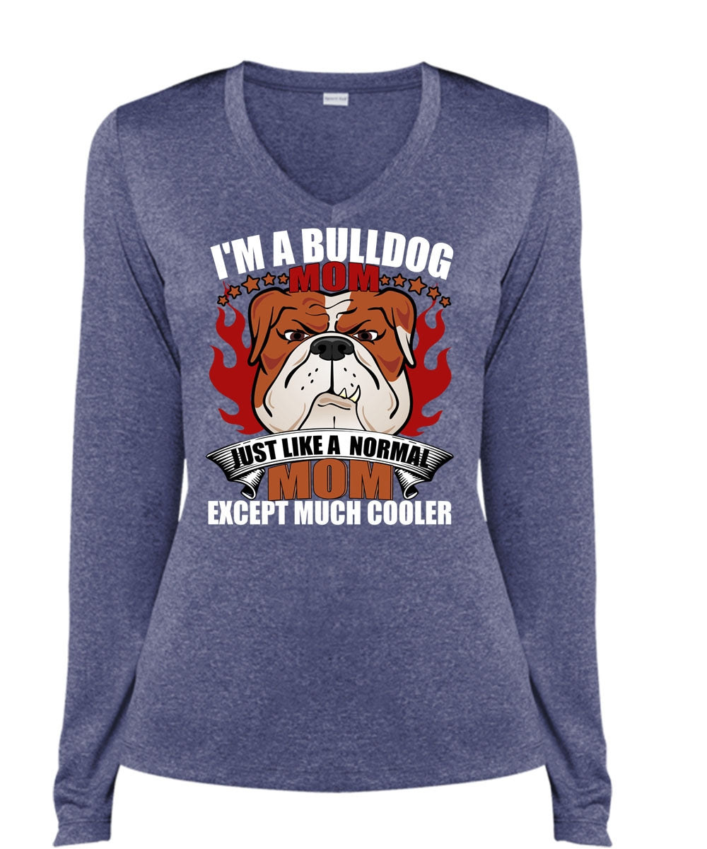 I'm A Bulldog Mom T Shirt, Just Like A Normal Mom T Shirt, Cool Shirt (Ladies LS Heather V-Neck)