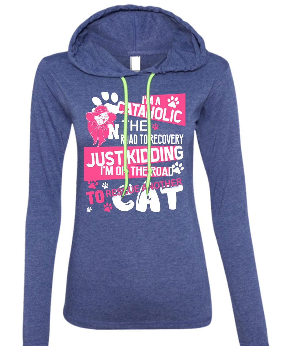 I'm A Cataholic In The Road T Shirt, My Favorite T Shirt (Anvil Ladies Ringspun Hooded)