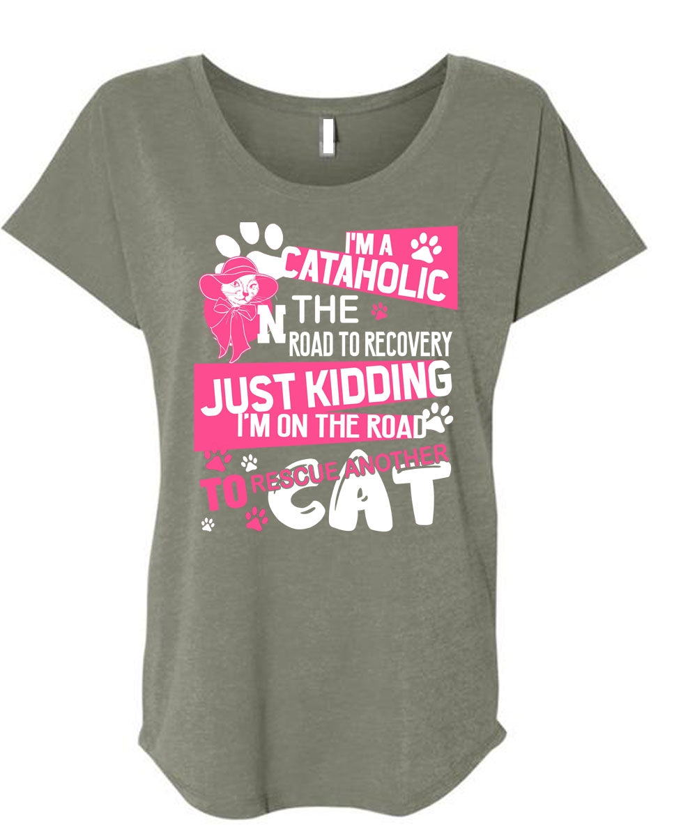 I'm A Cataholic In The Road T Shirt, My Favorite T Shirt, Cool Shirt (Ladies' Triblend Dolman Sleeve)