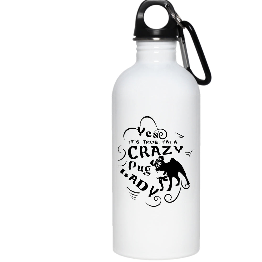 I'm A Crazy Pug Lady 20 oz Stainless Steel Bottle,I Love Dogs Outdoor Sports Water Bottle