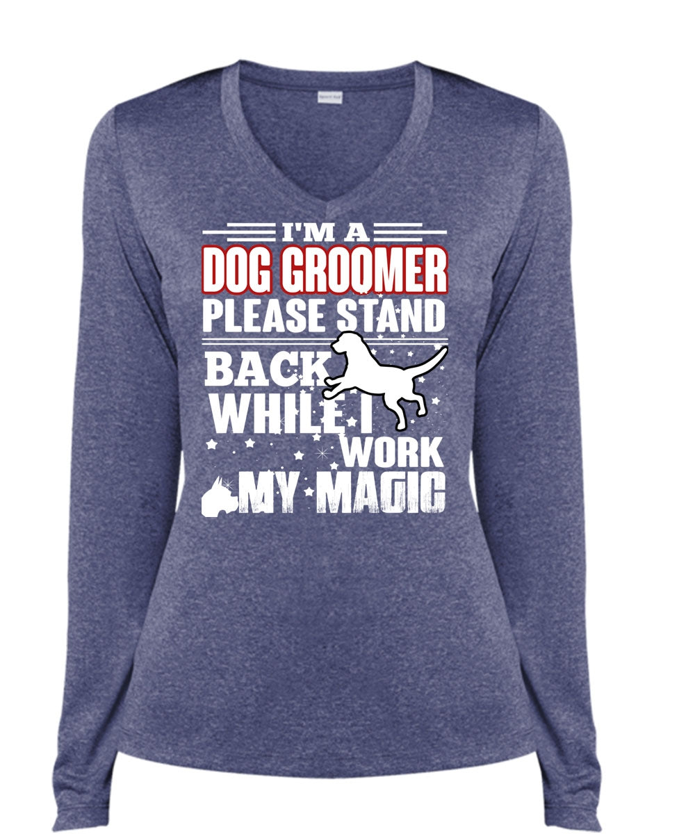 I'm A Dog Groomer T Shirt, Being A Groomer T Shirt, Cool Shirt (Ladies LS Heather V-Neck)