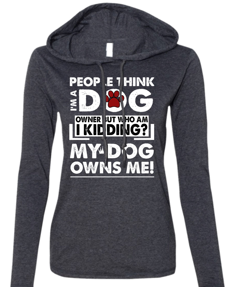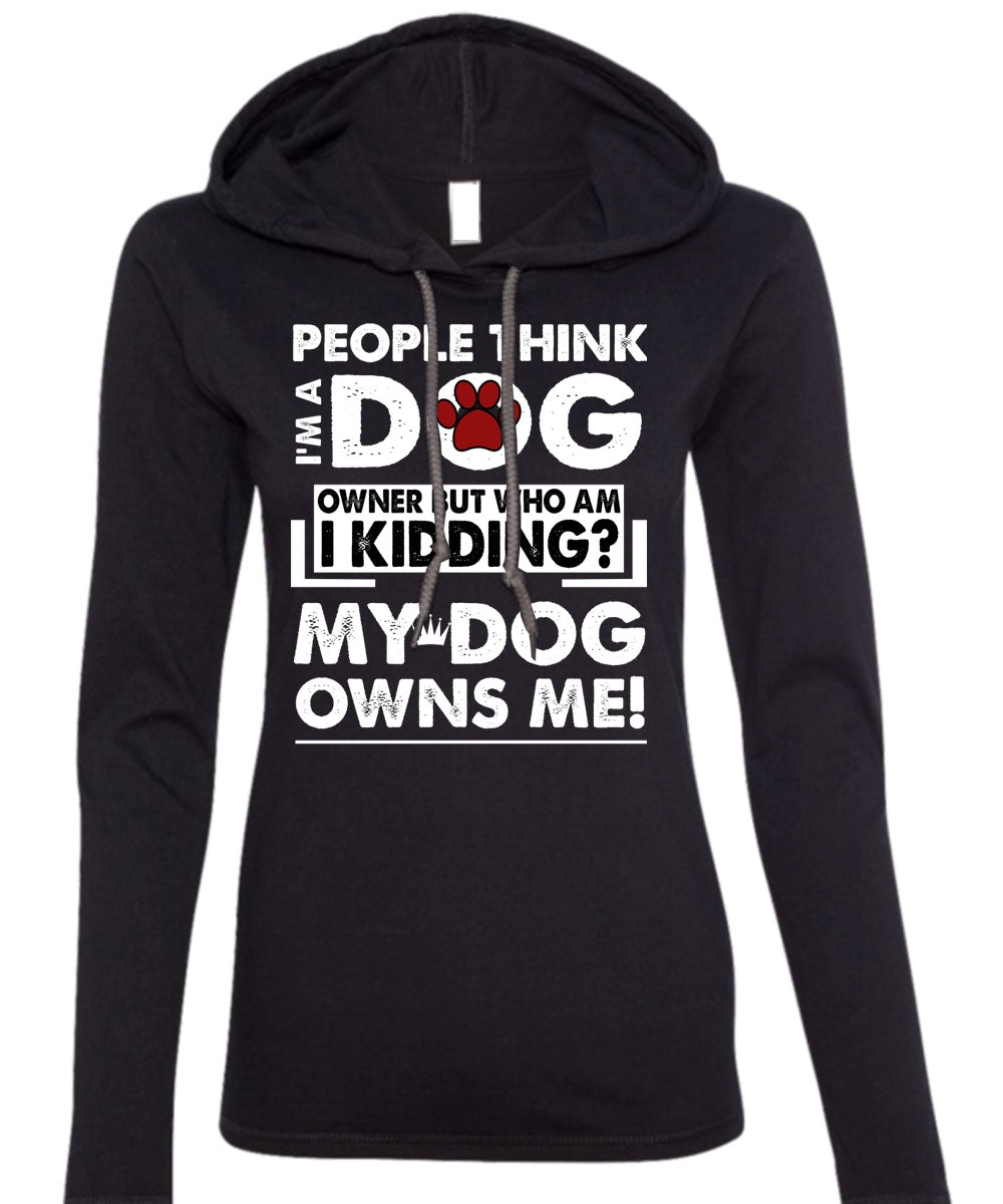 I'm A Dog T Shirt, My Dog Owns Me T Shirt (Anvil Ladies Ringspun Hooded)