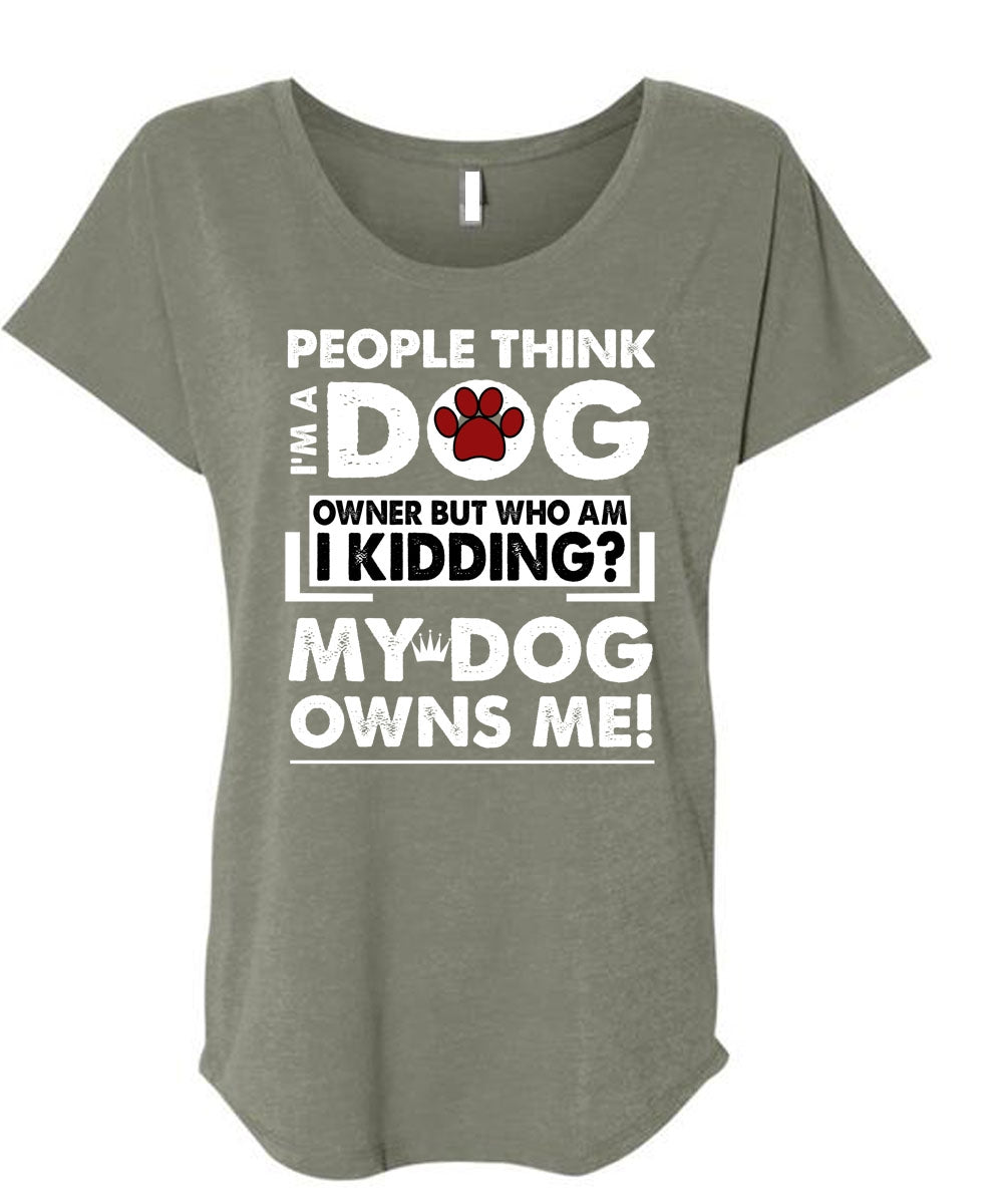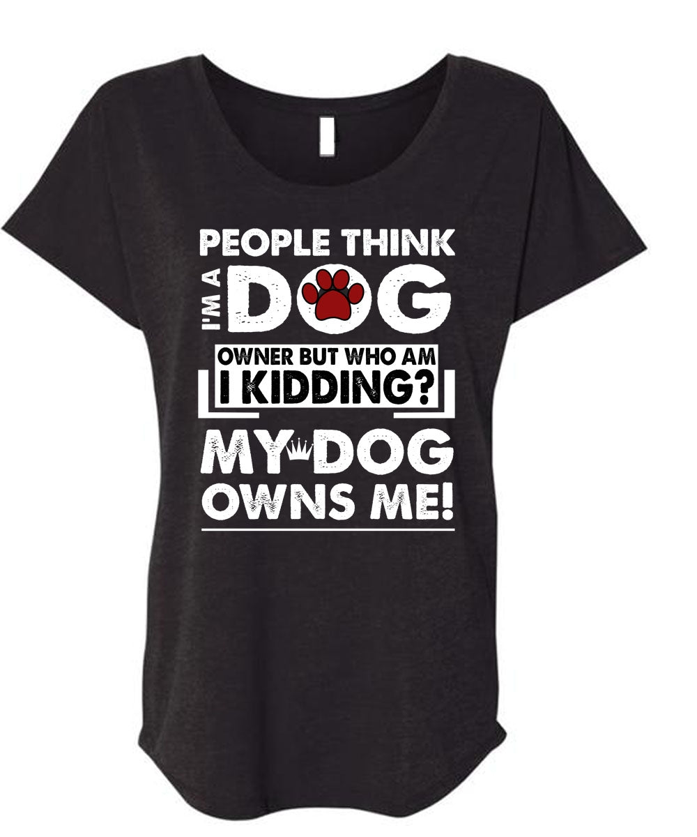 I'm A Dog T Shirt, My Dog Owns Me T Shirt, Cool Shirt (Ladies' Triblend Dolman Sleeve)