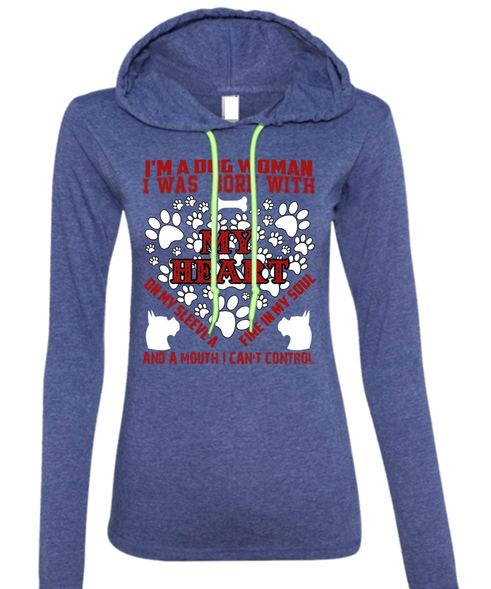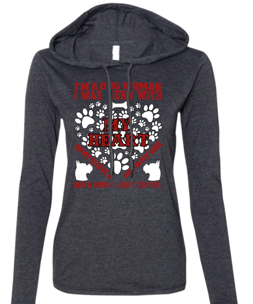 I'm A Dog Woman T Shirt, I Was Born With My Heart T Shirt (Anvil Ladies Ringspun Hooded)