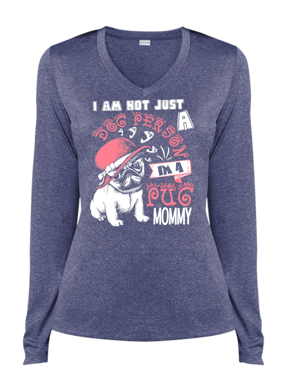 I'm A Pug Mommy T Shirt, I Am Not Just A Dog Person T Shirt, Cool Shirt (Ladies LS Heather V-Neck)