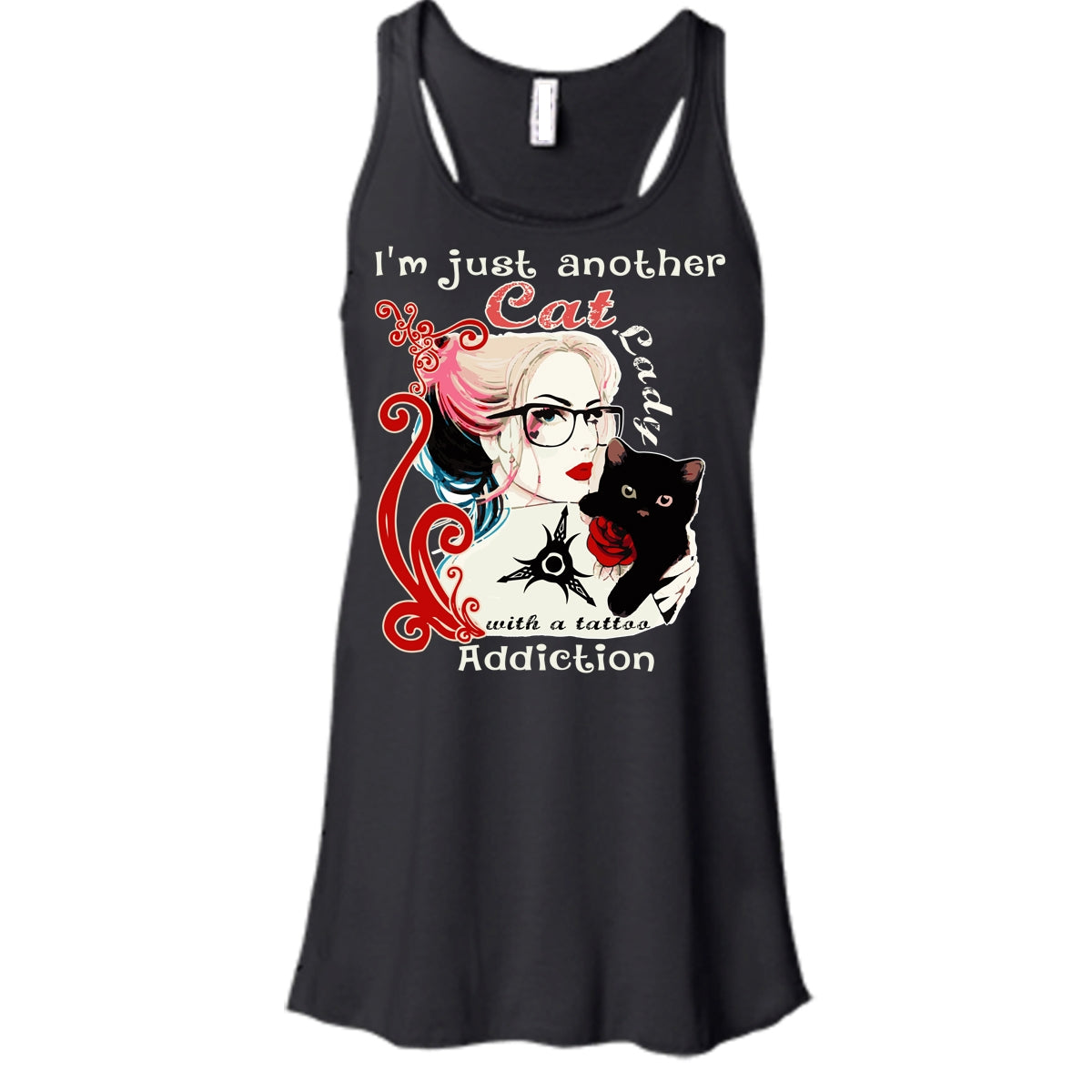 I'm Just Another Cat Lady T Shirt, Cat Lady With A Tattoo Addiction Tank Top
