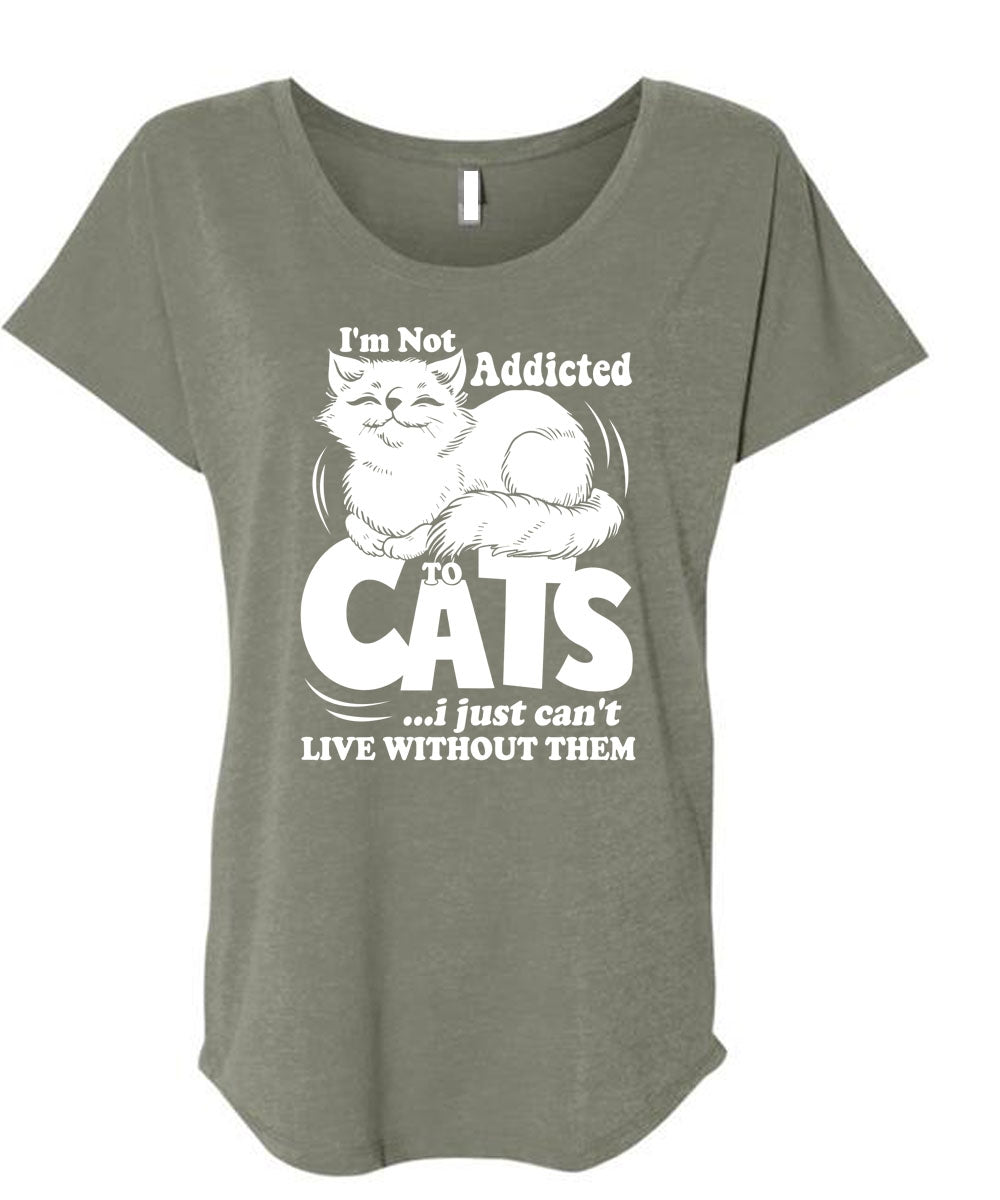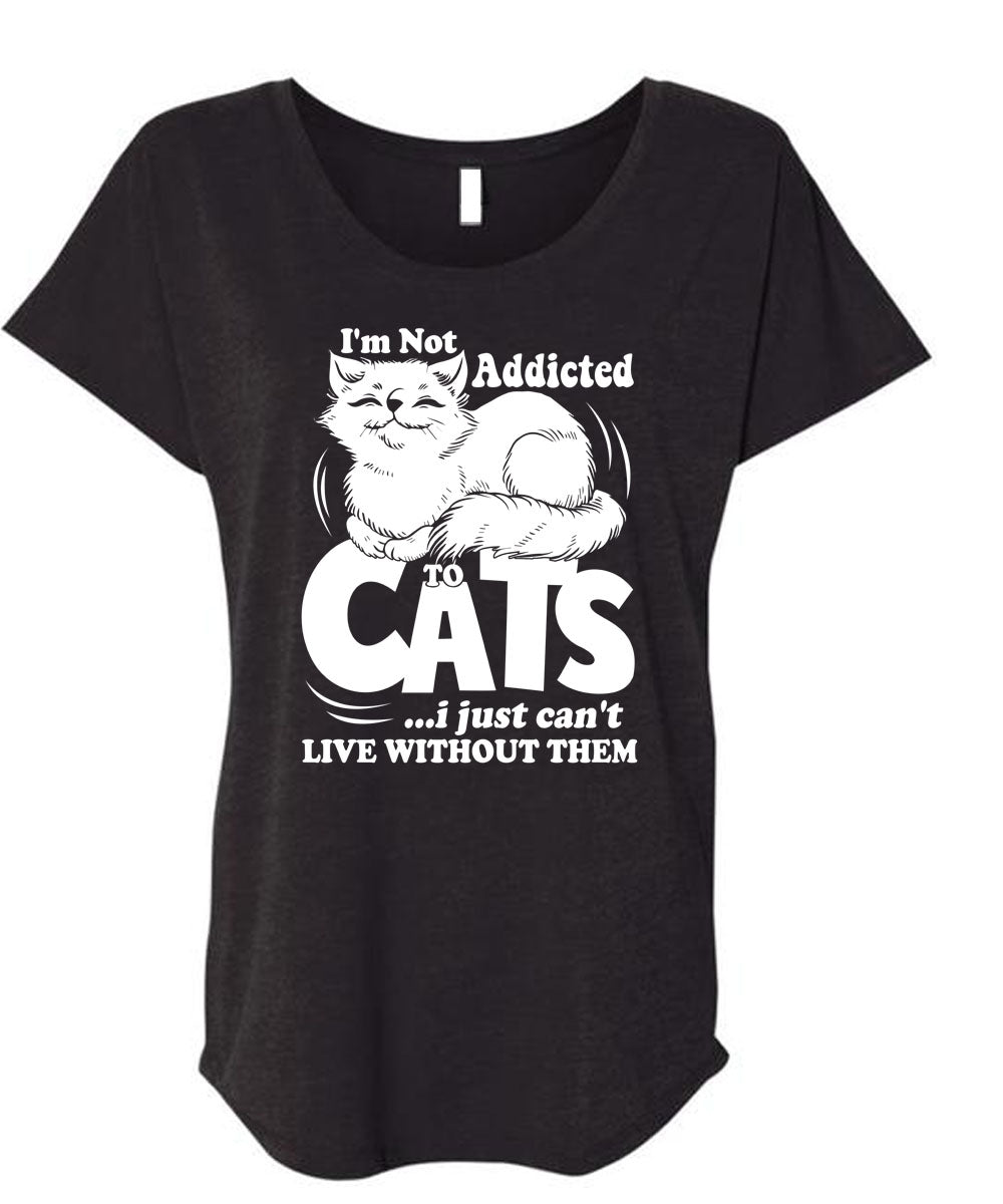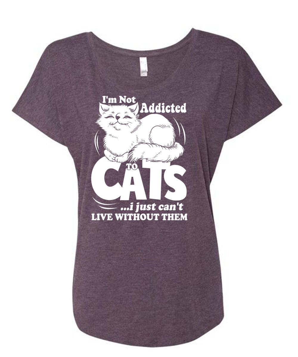 I'm Not Addicted To Cats T Shirt, My Favorite T Shirt, Cool Shirt (Ladies' Triblend Dolman Sleeve)