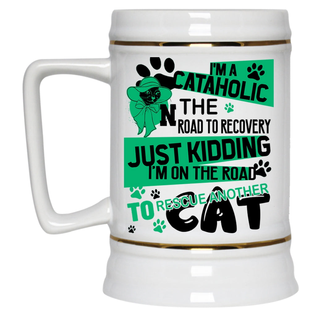 I'm On The Road To Rescue Cat Beer Stein 22oz, I'm A Cataholic Beer Mug