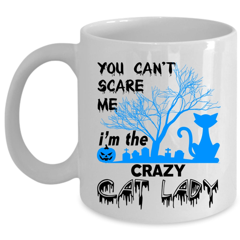 I'm The Crazy Cat Lady Coffee Mug, You Can't Scare Me Cup