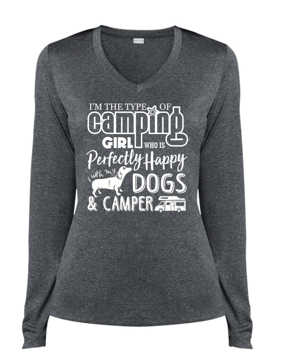 I'm The Type Of Camping Girl T Shirt, Dogs And Camper T Shirt, Cool Shirt (Ladies LS Heather V-Neck)