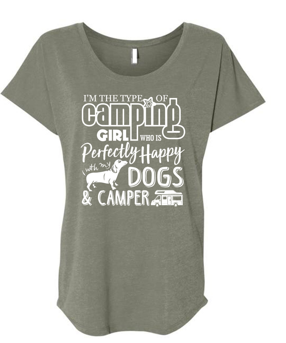I'm The Type Of Camping Girl T Shirt, Dogs And Camper T Shirt, Cool Shirt (Ladies' Triblend Dolman Sleeve)