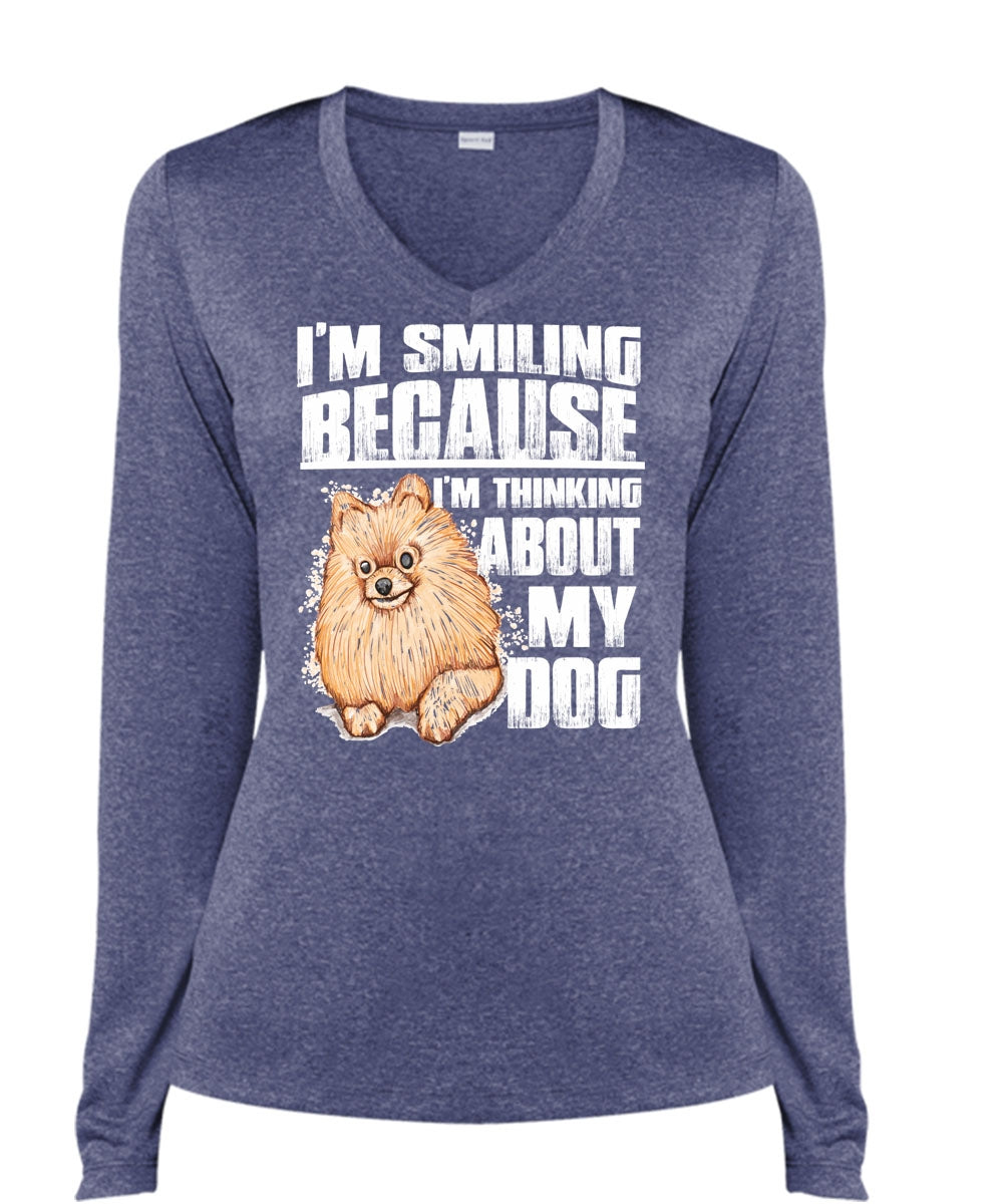 I'm Thinking About My Dog T Shirt, I'm Smiling T Shirt, Cool Shirt (Ladies LS Heather V-Neck)