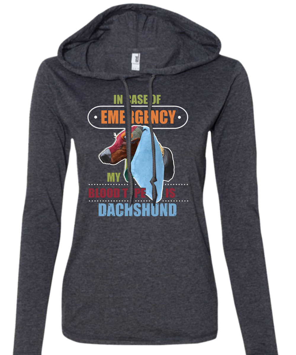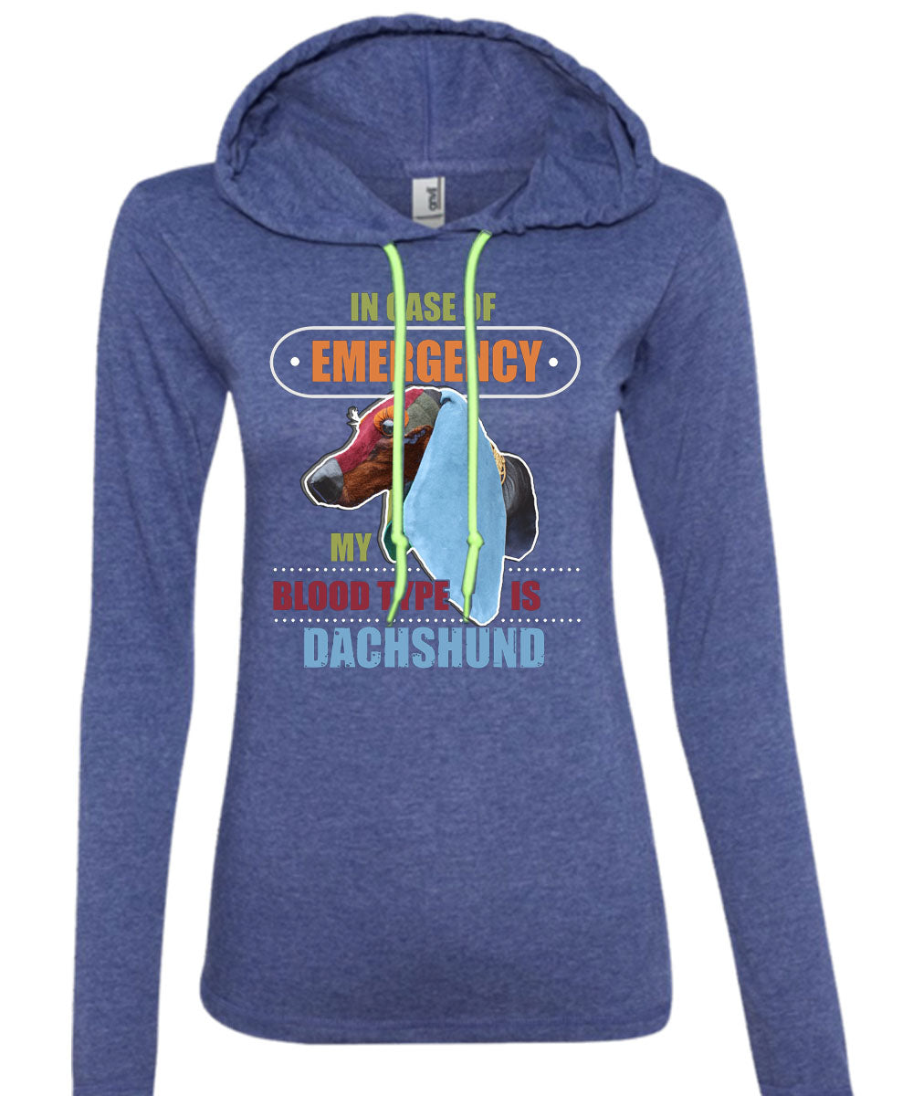 In Case Of Emergency My Blood Type Is Dachshund T Shirt, I Love My Dog T Shirt (Anvil Ladies Ringspun Hooded)