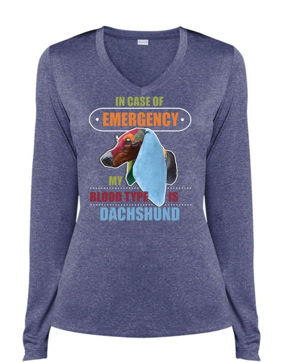 In Case Of Emergency My Blood Type Is Dachshund T Shirt, I Love My Dog T Shirt, Cool Shirt (Ladies LS Heather V-Neck)