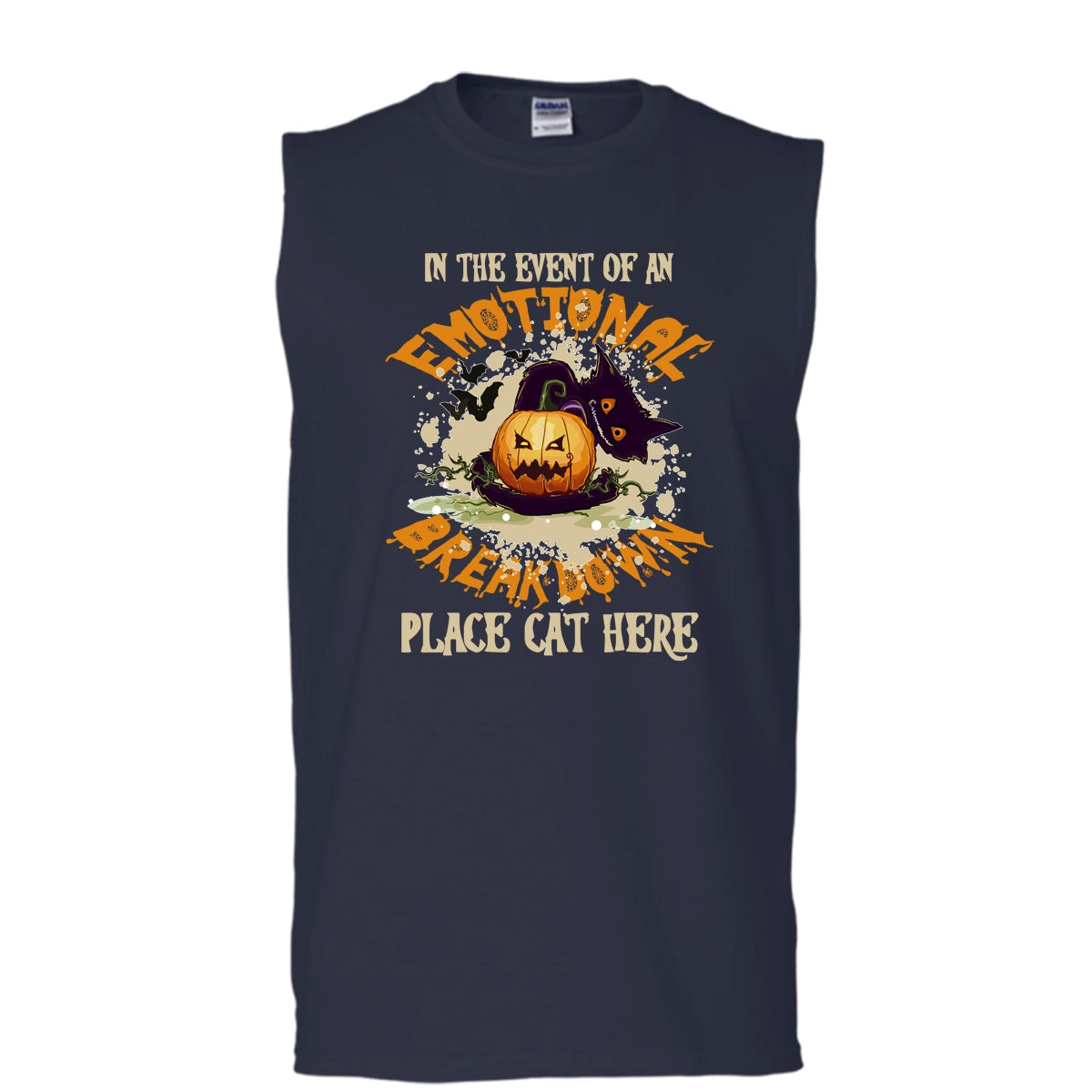 In The Event Of An Emotional Breakdown T Shirt, Place Cat Here T Shirt, Cool T Shirt (Men's Cotton Sleeveless)