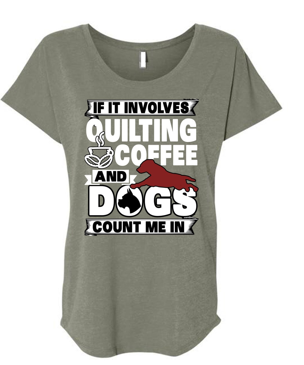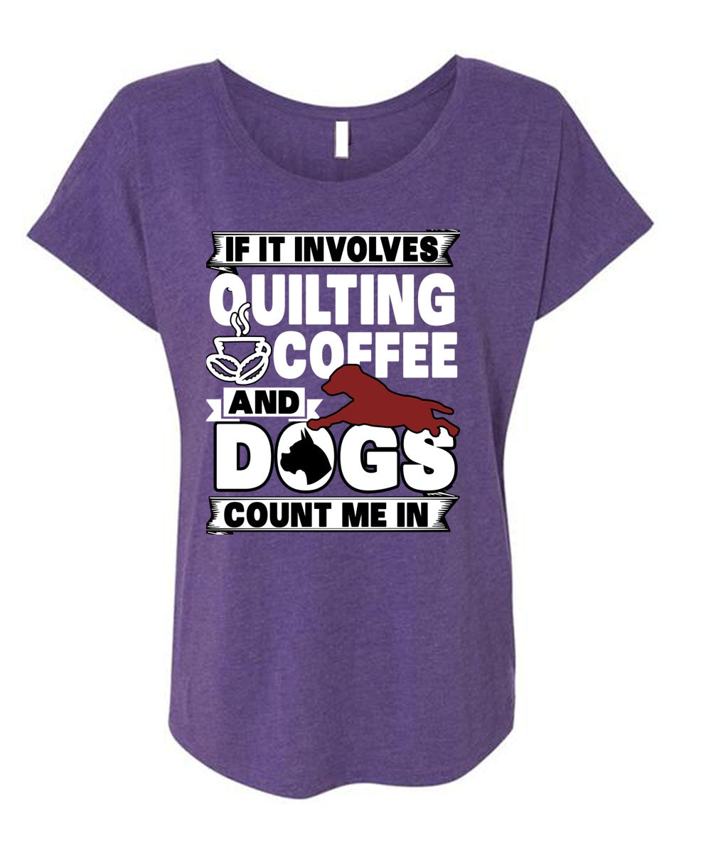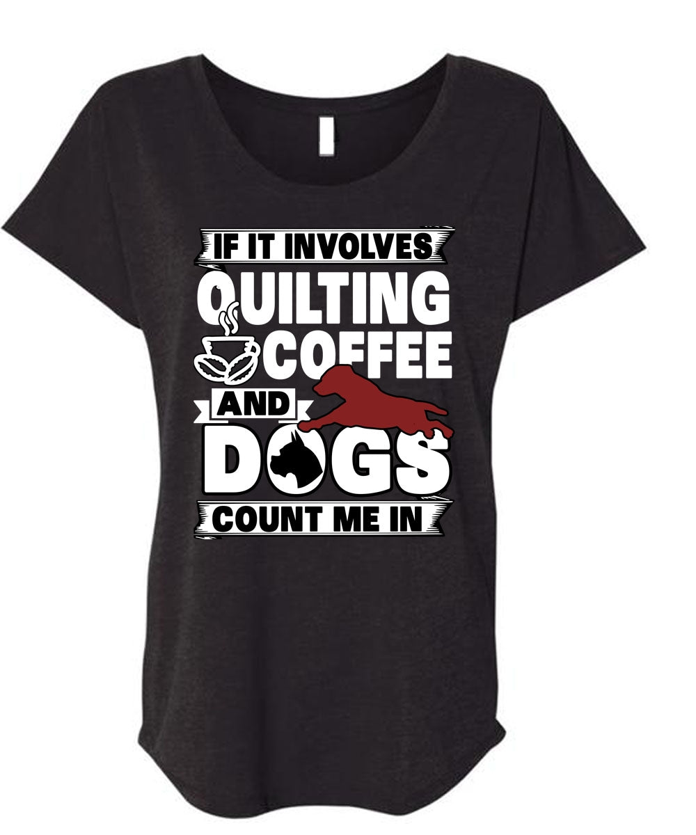 It Involves Quilting Coffee T Shirt, Dogs Count Me In T Shirt, Cool Shirt (Ladies' Triblend Dolman Sleeve)